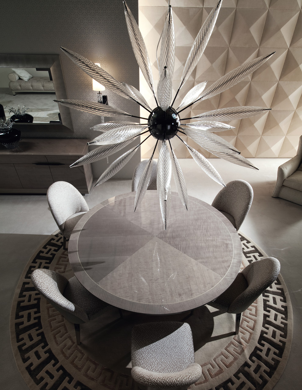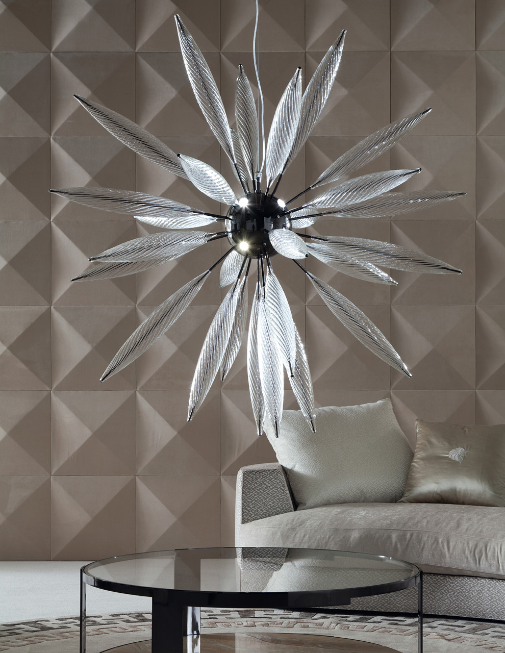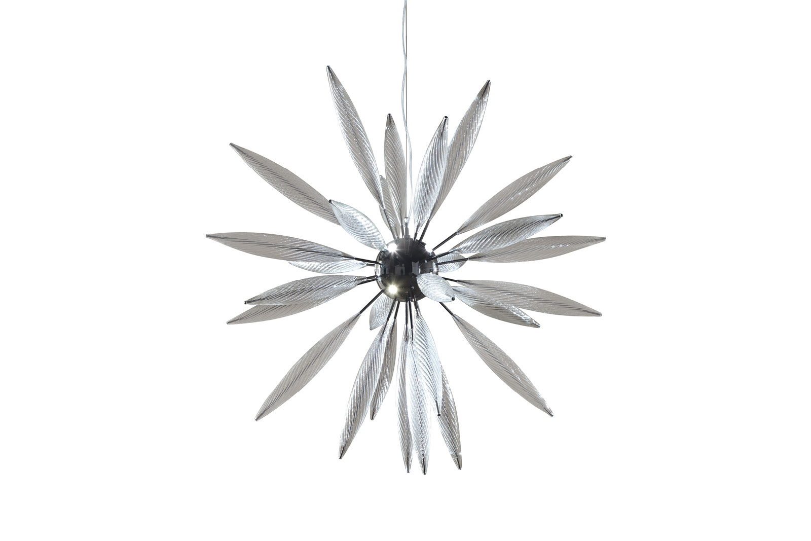 Hand blown glass Venetian "Murano" round chandelier with 8 lights. Composed of 25 Venetian "Murano" clear blow glasses. Center in stainless steel in storm dark grey finish.