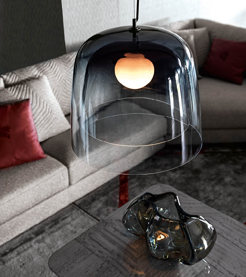 Single chandelier in Venetian "Murano" graded smoked blown glass. Dimmerable Gu10 led light, max 8W, needed (not included).