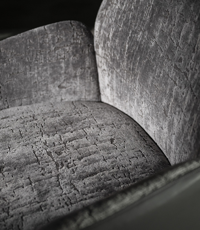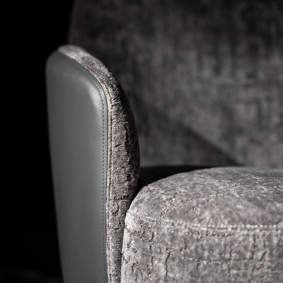 Occasional chair. Back with Giorgio Collection logo.Base details in light gold chrome stainless steel.