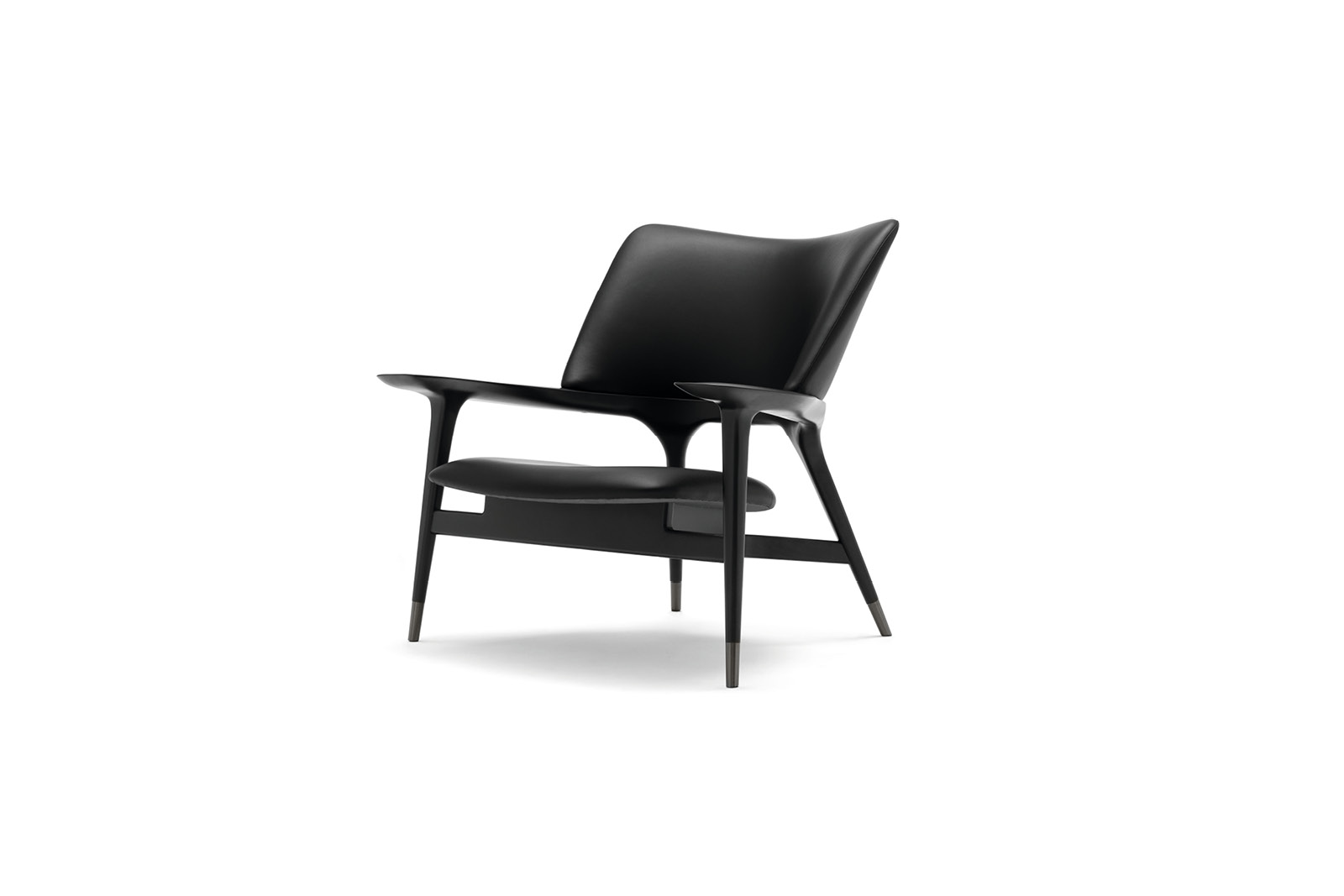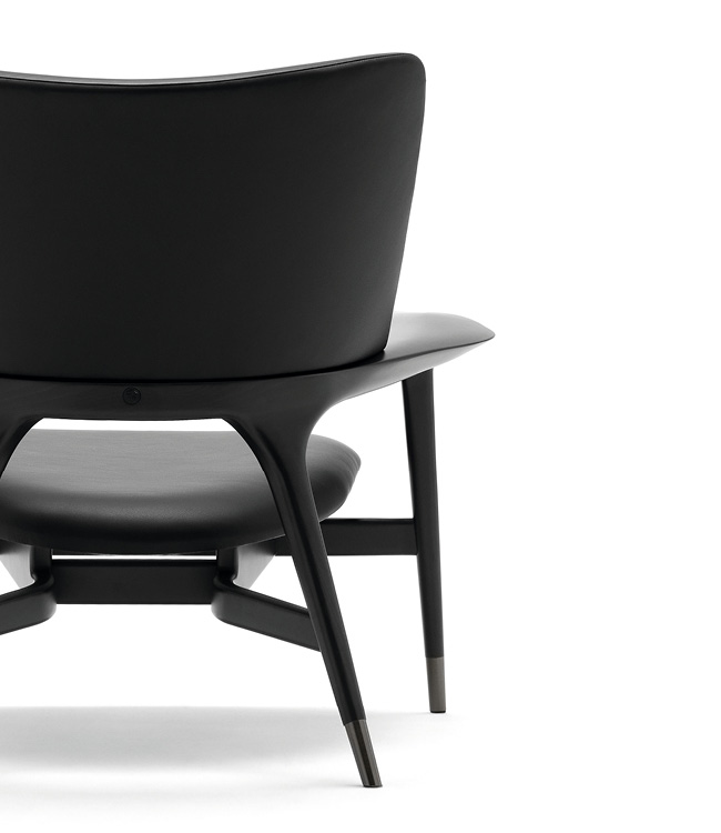 Occasional chair available in first grade leather, nubuk leather, lizard printed leather, velvet or suede fabric. Structure in solid stained black bleached wood. Wooden base wich Giorgio Collection logo.