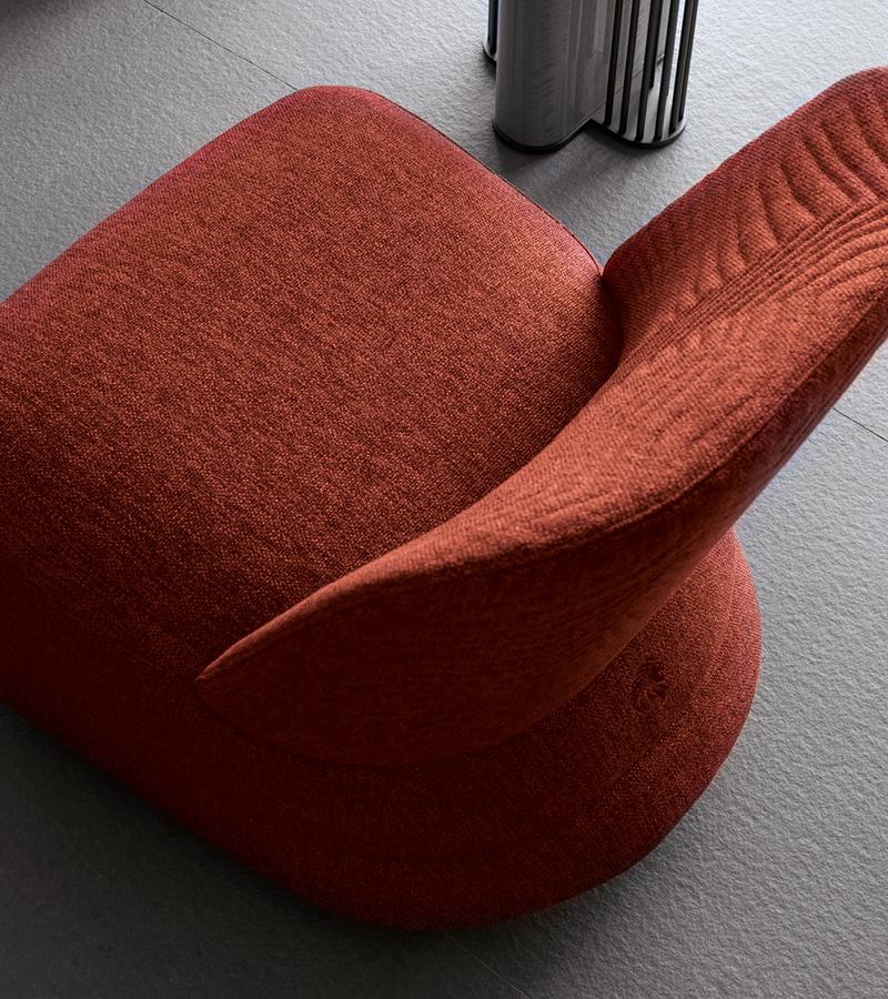 Occasional swivel chair available in first grade leather, nubuk leather, lizard printed leather, velvet or suede fabric. Chair seat and sides with double stitching in polyurethane foam wrapped in down feather. Quilted back with embroidered Giorgio Collection logo on the base.
