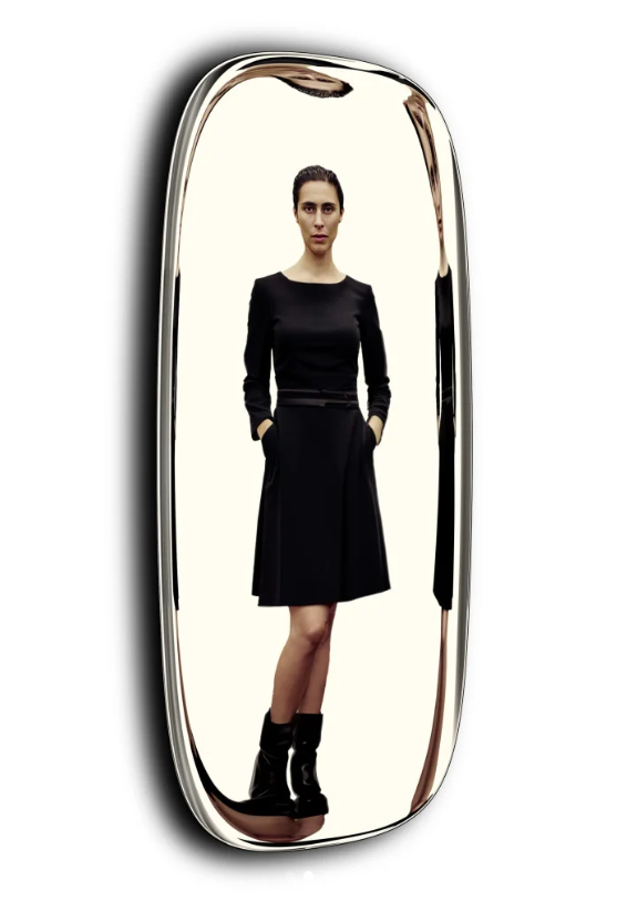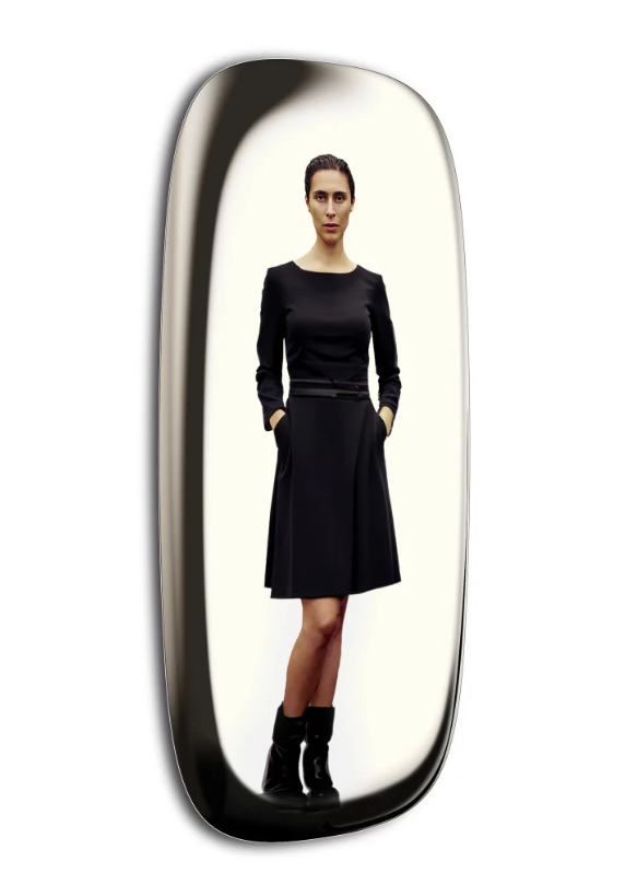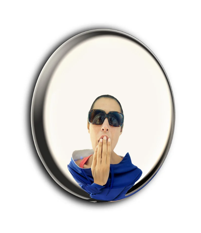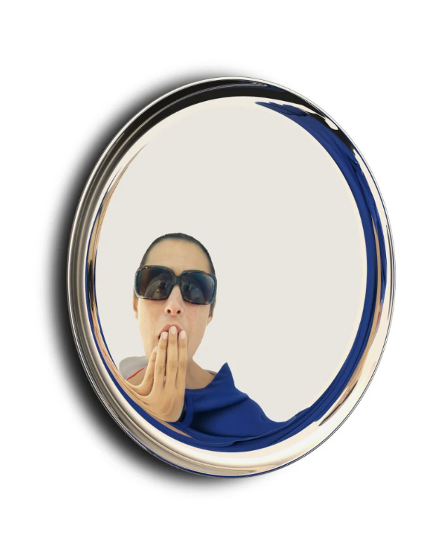 Serie di 4 specchi realizzati in un’unica lastra di cristallo extrachiaro curvata su tutto il perimetro grazie ad innovative e complesse tecniche di lavorazione, e argentata manualmente a regola d’arte. A seconda della faccia argentata, si ottiene uno specchio dalla superficie concava o convessa, con una cornice che riflette le immagini distorcendole in maniera inaspettata (stirandole nella versione concava e comprimendole nella versione convessa), mentre la zona al centro, perfettamente piana, garantisce un riflesso fedele e un utilizzo funzionale. Disponibili in due formati, rotondo e rettangolare. La forma rettangolare può essere appesa in entrambe le direzioni. La forma concava è disponibile retro-verniciata nei colori argento o arancio Pantone 163C.