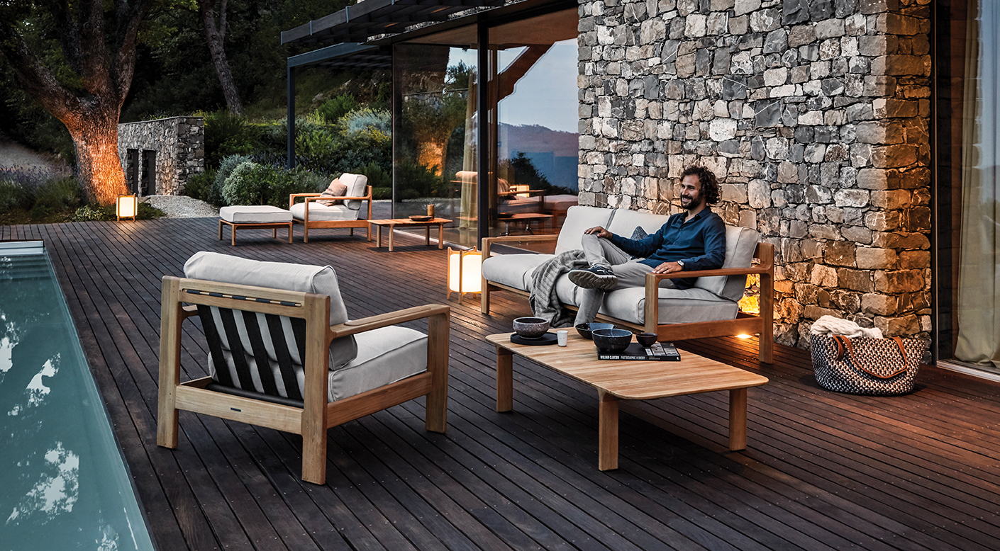 Broad horizontal lines and assertive angles combine to form the bold, indulgent profile of Loop. But Loop is not just about first impressions. Look closer and details can be found that further emphasize Gloster’s reputation for quality and design. Subtle curves add a level of sophistication. Back straps are deliberately wide to unite materials used. And the junction between strap and teak is proudly displayed, creating a confident line that further unites all seating options.