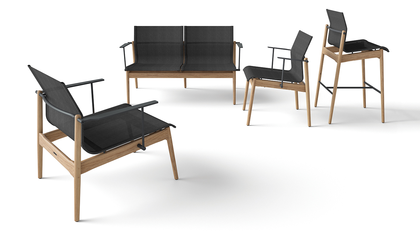 In outdoor situations we often spend more time relaxing and lounging, and when dining we tend to take our time. So why not make the situation as comfortable as possible? With Sway, Danish designer Henrik Pedersen has combined a finely proportioned teak frame with a practical sling seat and back to deliver inherent sprung comfort despite an extremely minimal profile.