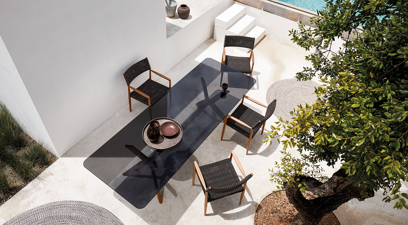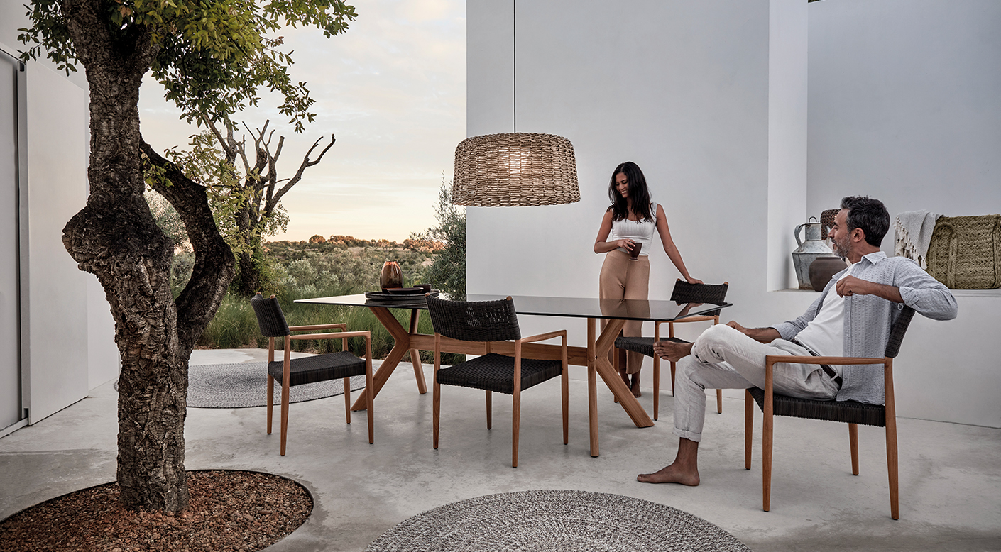 A simple and stylish dining solution, Tundra combines sustainably grown plantation teak with durable synthetic fibres. All weather wicker is artfully hand woven about a skilfully crafted, Scandinavian style frame; both materials partnering to produce a perfect table companion.