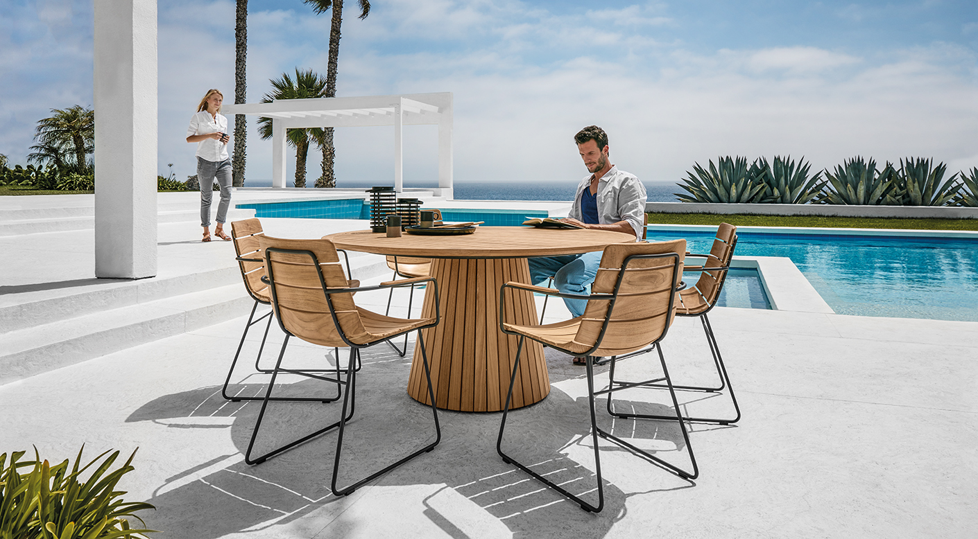 Strong but simple powder coated steel frames carry signature broad, curved plantation teak slats that define the design language of William. Matching teak armrests continue the simply stylish message, while optional seat pads in a variety of durable outdoor fabrics are available if required.