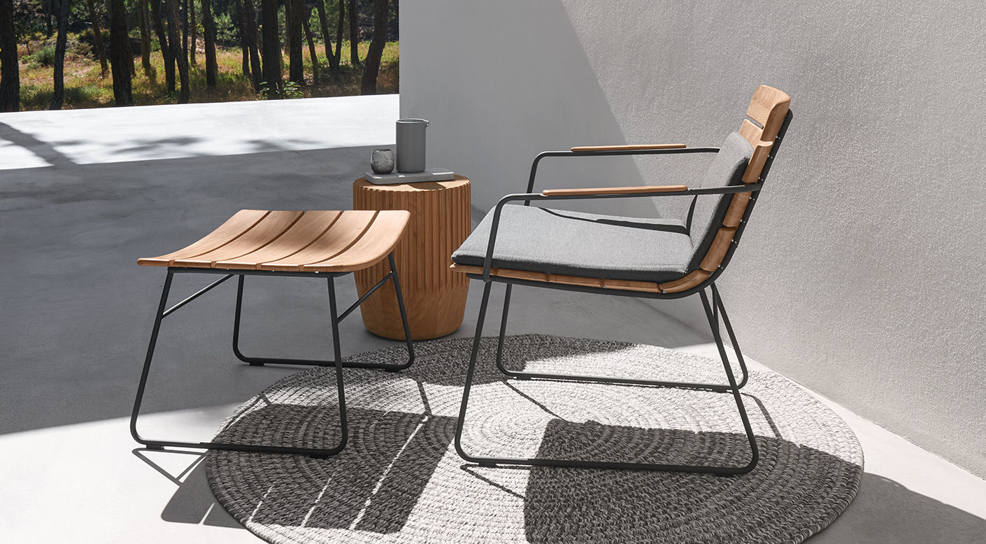 Strong but simple powder coated steel frames carry signature broad, curved plantation teak slats that define the design language of William. Matching teak armrests continue the simply stylish message, while optional seat pads in a variety of durable outdoor fabrics are available if required.