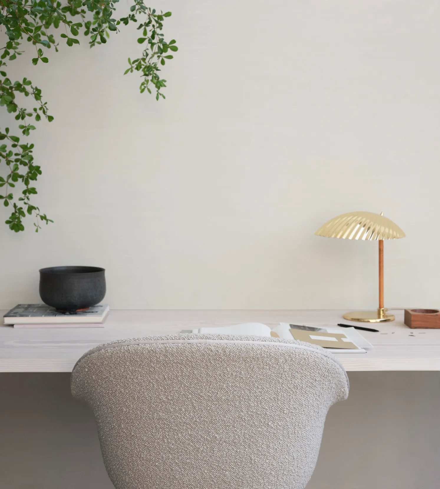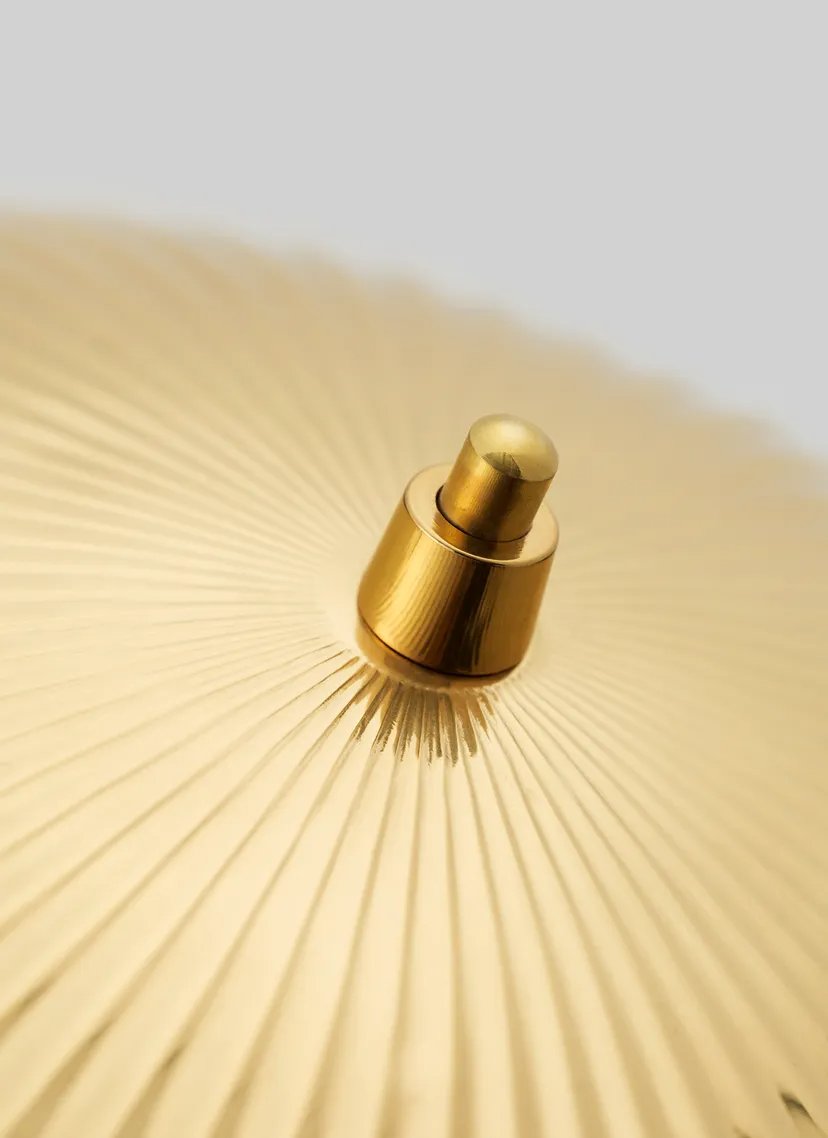 Paavo Tynell’s fanciful take on nature is gracefully echoed in the 5321 Table Lamp, designed by the Finnish designer in 1941. Under the distinctive shell inspired brass shade, the bulb subtly appears from beneath; a picturesque detail resembling the desirable sea shell pearl and making the 5321 Table Lamp a perfect example on how Tynell brought a playful nature and romance to the simplified style of mid-century modernism. Blending timeless aesthetic with a unique sense of form, the 5321 Table Lamp adds an exquisite character to complement any modern space. Both decorative and functional, the lamp is a balance of elegance and curiosity, providing a design that is at once subtle and surprising.