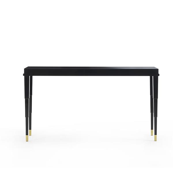 Consolle with lacquered top. Lacquered solid wood and wooden panels structure with satin brass or bronze finish legs ferrules.