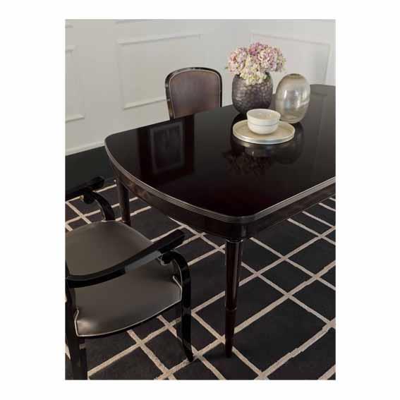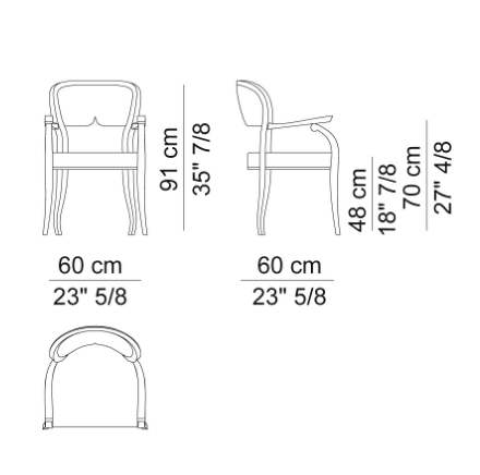 Dining arm chair with solid beech wood structure. Seat with elastic straps. Polyurethane foam and polyester fiber lining. Non-removable cover. Gros grain piping.