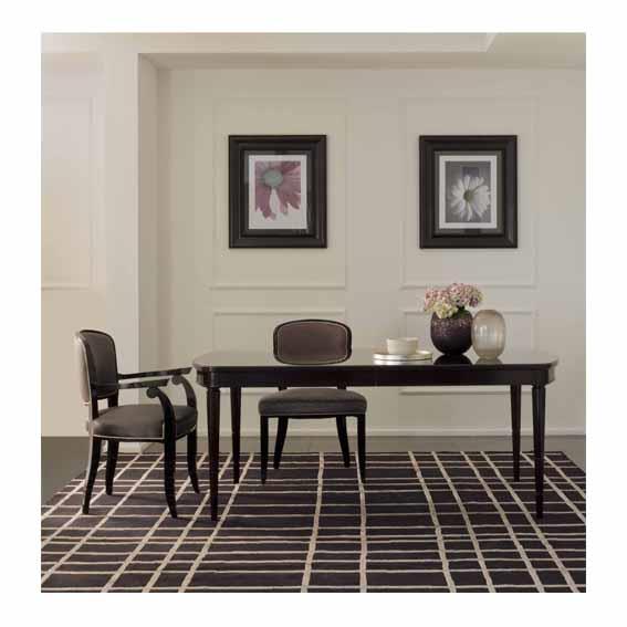 Dining chair with solid beech wood structure. Seat with elastic straps. Polyurethane foam and polyester fiber lining. Non-removable cover. Gros grain piping.