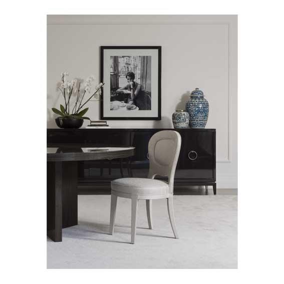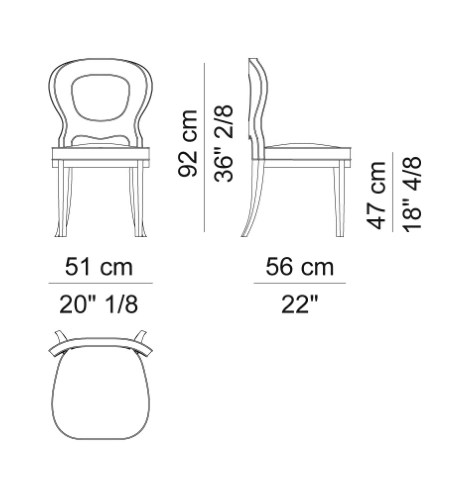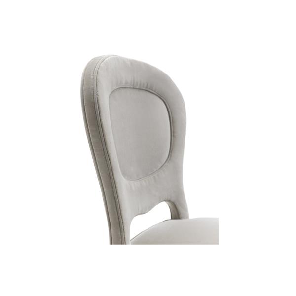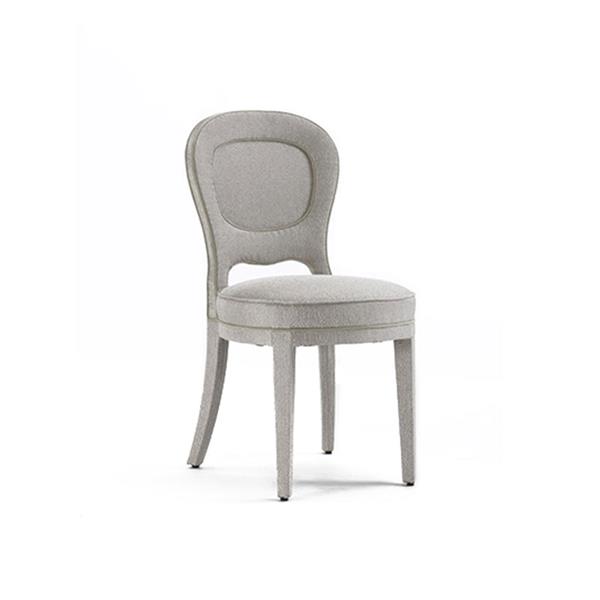 Dining chair with solid beech wood structure. Plywood seat. Polyurethane foam and polyester fiber lining. Non-removable cover. Gros grain piping.