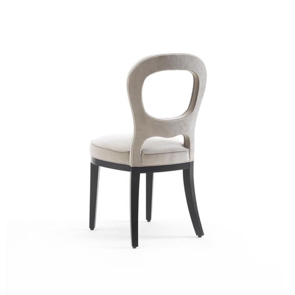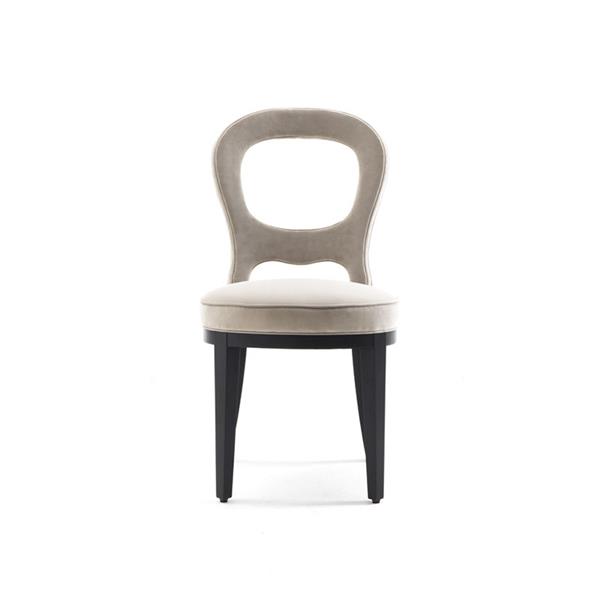 Dining chair with solid beech wood structure. Plywood seat. Polyurethane foam and polyester fiber lining. Non-removable cover. Gros grain piping.