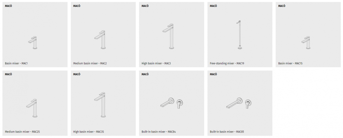 Macò is a line of brass mixers for bathrooms. It is proposed in the single-lever and single-hole version but the different components included in the series make it customizable up to two holes.