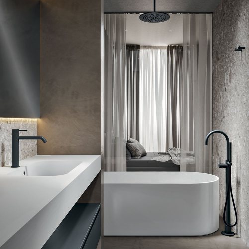 Roon is a series of brass bathroom mixers especially created for contracts and big projects, available in the single-hole and wall-mounted versions. The shower mixers are also available in the thermostatic version.