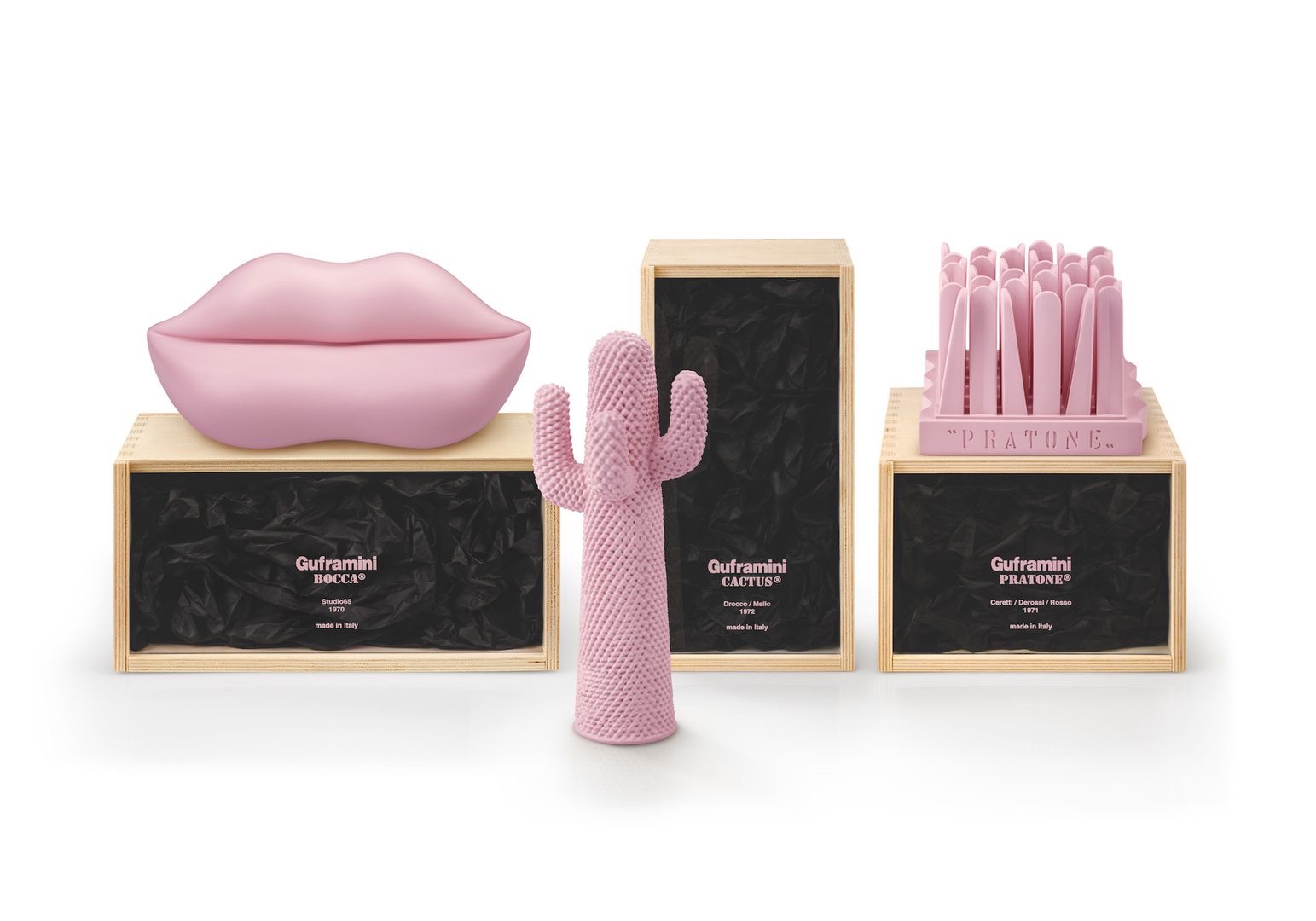 Entrate nell'afascinante mondo di GUFRAMlNl, una straordinariacollezione che condensa la magia e il fascino intramontabile dellepi?o celebri opere di Gufram in intricate forme in miniatura.Realizzati con straordinaria cura in scala l:8, questi pezzi, seppurpiccoli, sono riccamente dettagliati e costituiscono unatestimonianza eloquente dell'ineguagliabile abilit?à artistica e dellaprofondaimmaginazione che caratterizzano il design italiano.