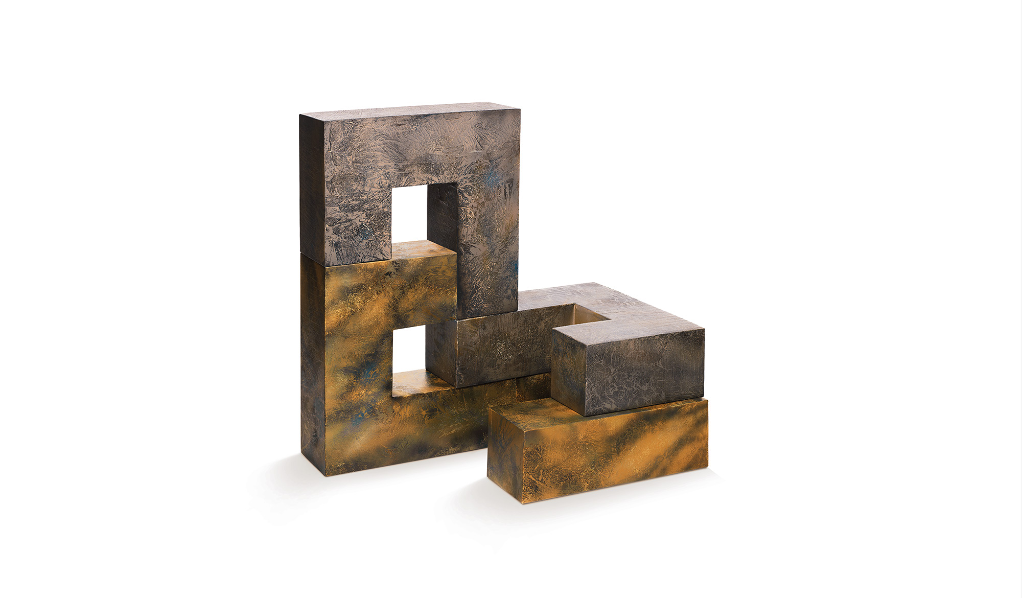 Designed by artist Kris Ruhs and inspired by weathering steel sculptures, Untitled is a modular decor item as well as a sculpture in soft polyurethane covered in Guflac - the special paint invented by the brand, thanks to which it is possible to make polyurethane foam look like leather, making it resistant but maintaining its softness.