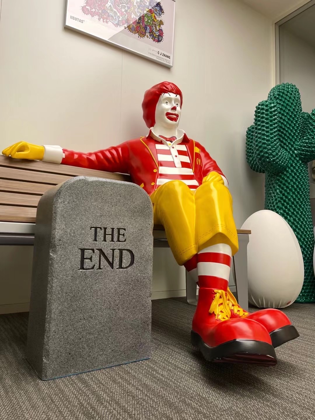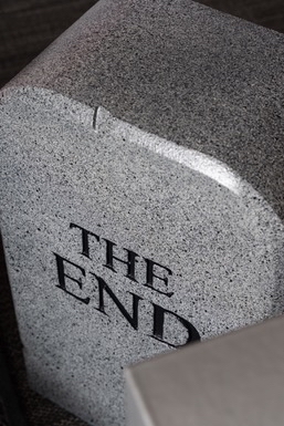 In una paradossale celebrazione del glorioso passato di Gufram,TO|LETPAPER presenta "THE éND", una seduta simile a una lapideche proclama la fine di Gufram in finto marmo. lronia della sorte, ilsuo aspetto funereo è annullato dalla morbidezza e dallaleggerezza della sua composizione in poliuretano. E, nonostantedichiari la fine di Gufram, ci si può sedere su questa lapide come suuno sgabello, incarnando lo spirito di anti-design che Gufram hasempre sostenuto.