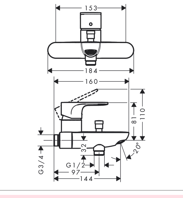 centre distance: 153 mm