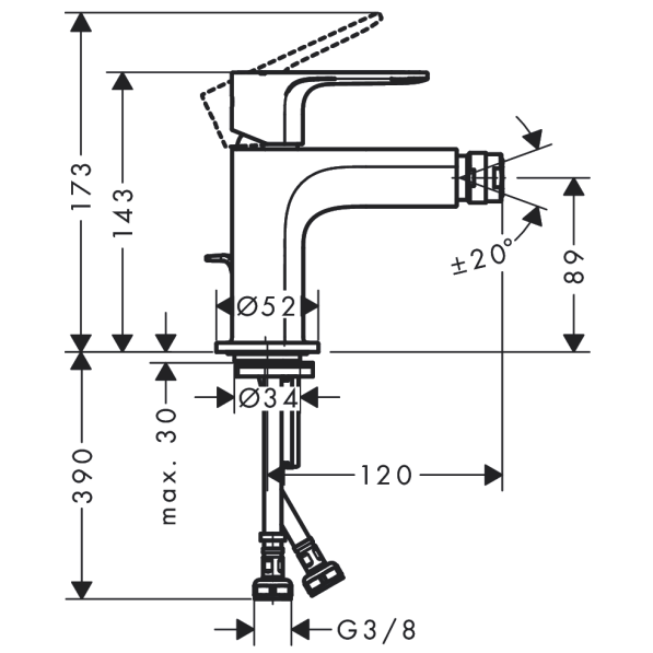 consists of: single lever bidet mixer, waste set