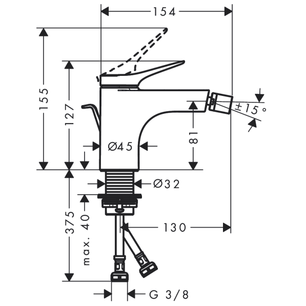 consists of: single lever bidet mixer, waste set