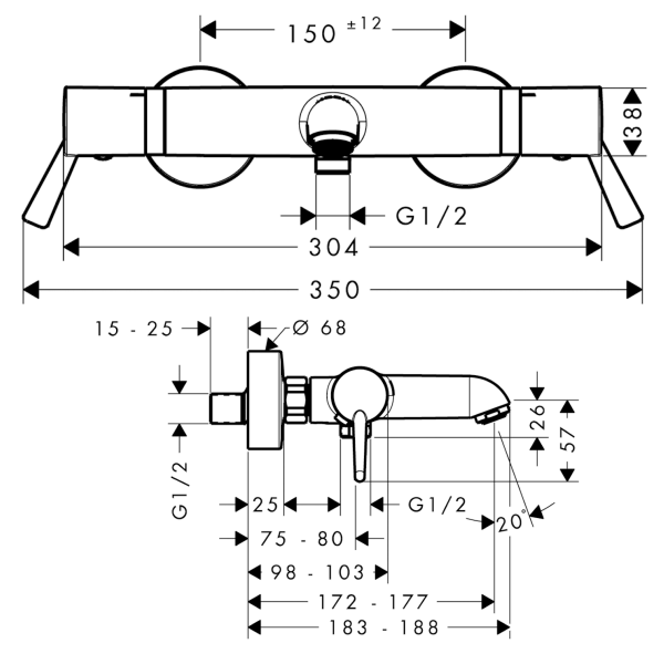 centre distance: 150 ± 12 mm