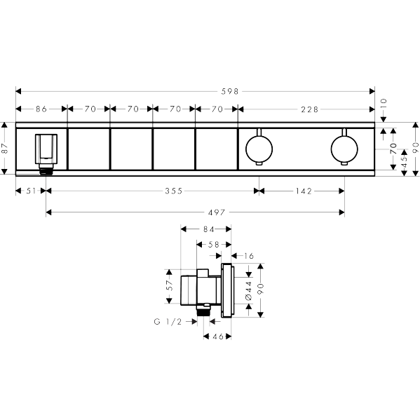 depending on volume flow and installation situation approx. 50% flow rate reduction and integrated shut off function