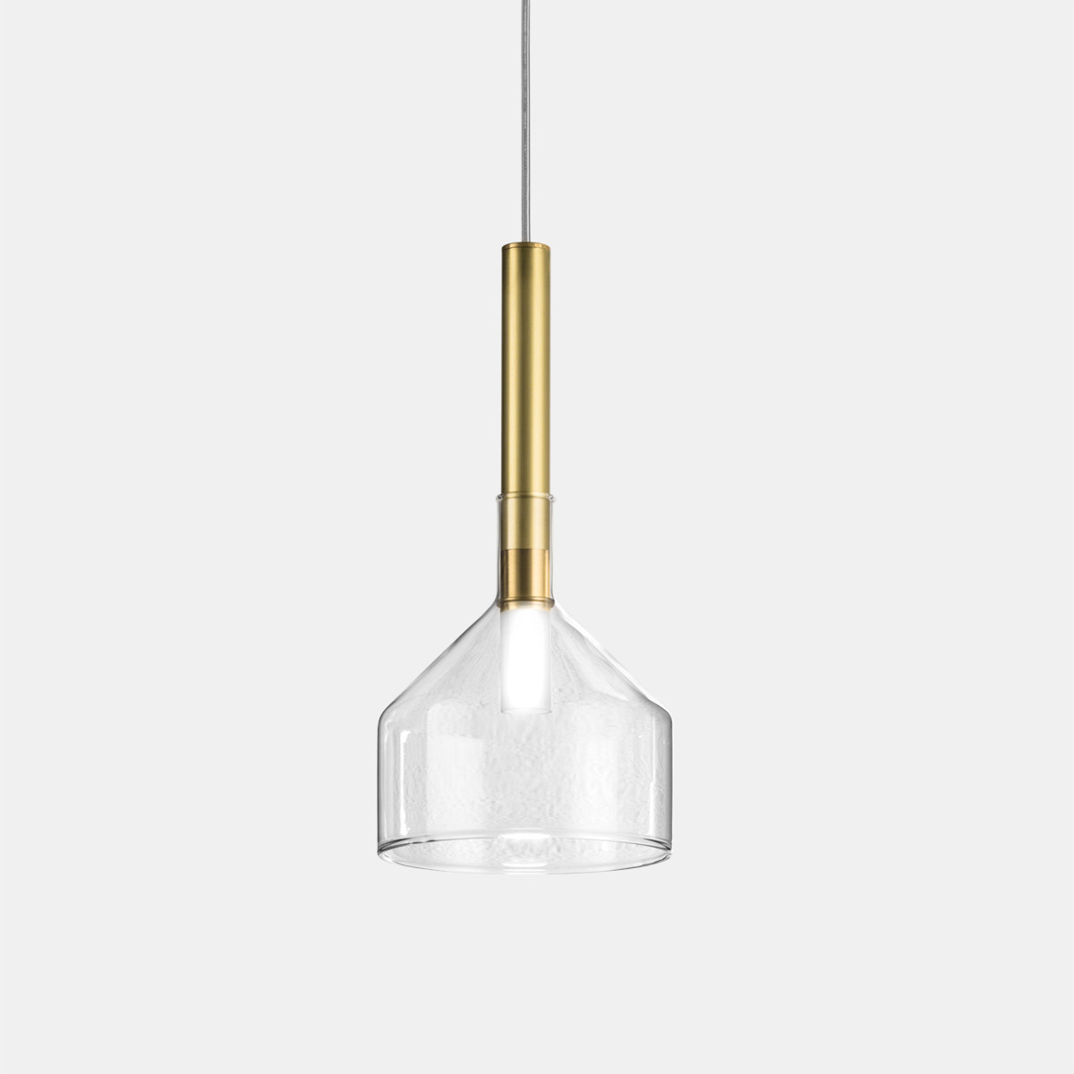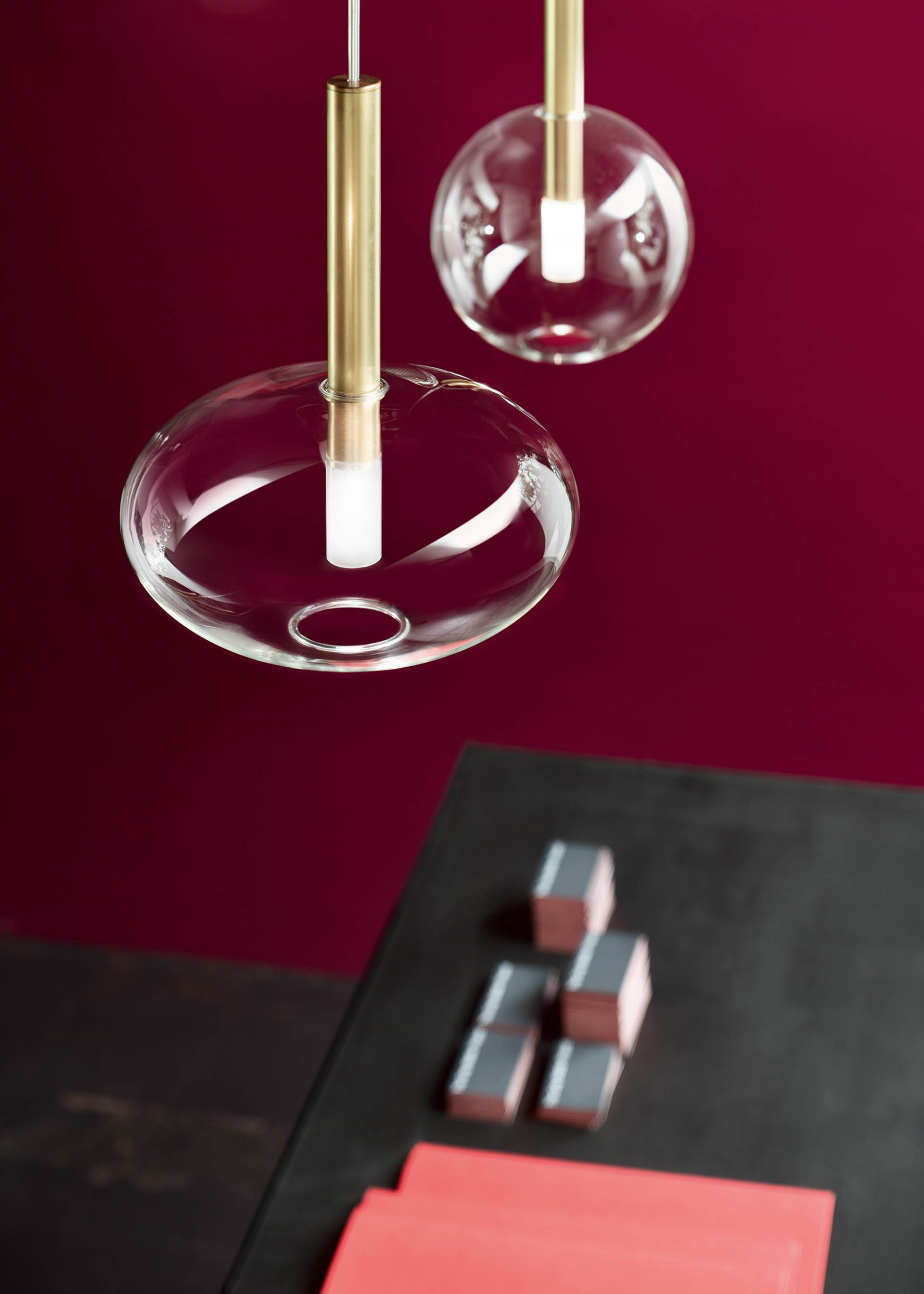 Un gioco di proporzioni ed accostamenti, di dimensioni, di materiali e di forme che danno vita a lampade in ottone naturale (ONT) o anticato (OOT) e vetro trasparente, delicate e raffinate. Una famiglia di lampade da comporre per rendere unico un ambiente, generando uno spazio nello spazio: il risultato finale è appunto una questione di alchimia.
