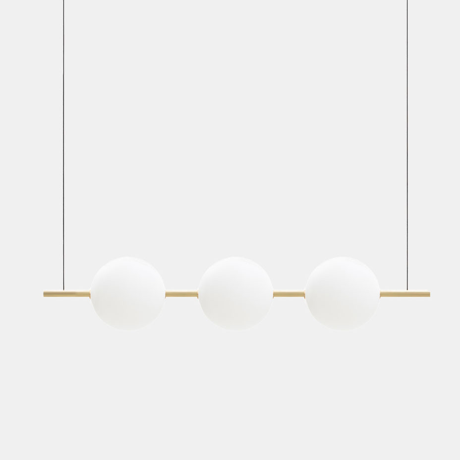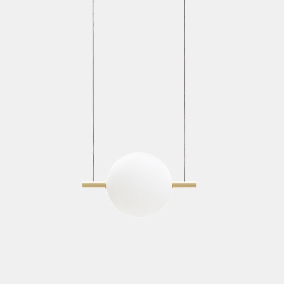 Suggestiva fusione di vetro e ottone, ALMA si inserisce con discrezione in ambienti contemporanei lasciando un segno di luce intenso dato dalla fonte luminosa a led dimmerabile. La geometria bilanciata conferisce un senso di stabilità alleggerito dalle sfere luminose sospese. Il risultato finale è un oggetto iconico con un’aura immateriale. ALMA è disponibile con finitura ottone spazzolato (cod. ON) e nero (cod. NN) in 5 modelli a sospensione.