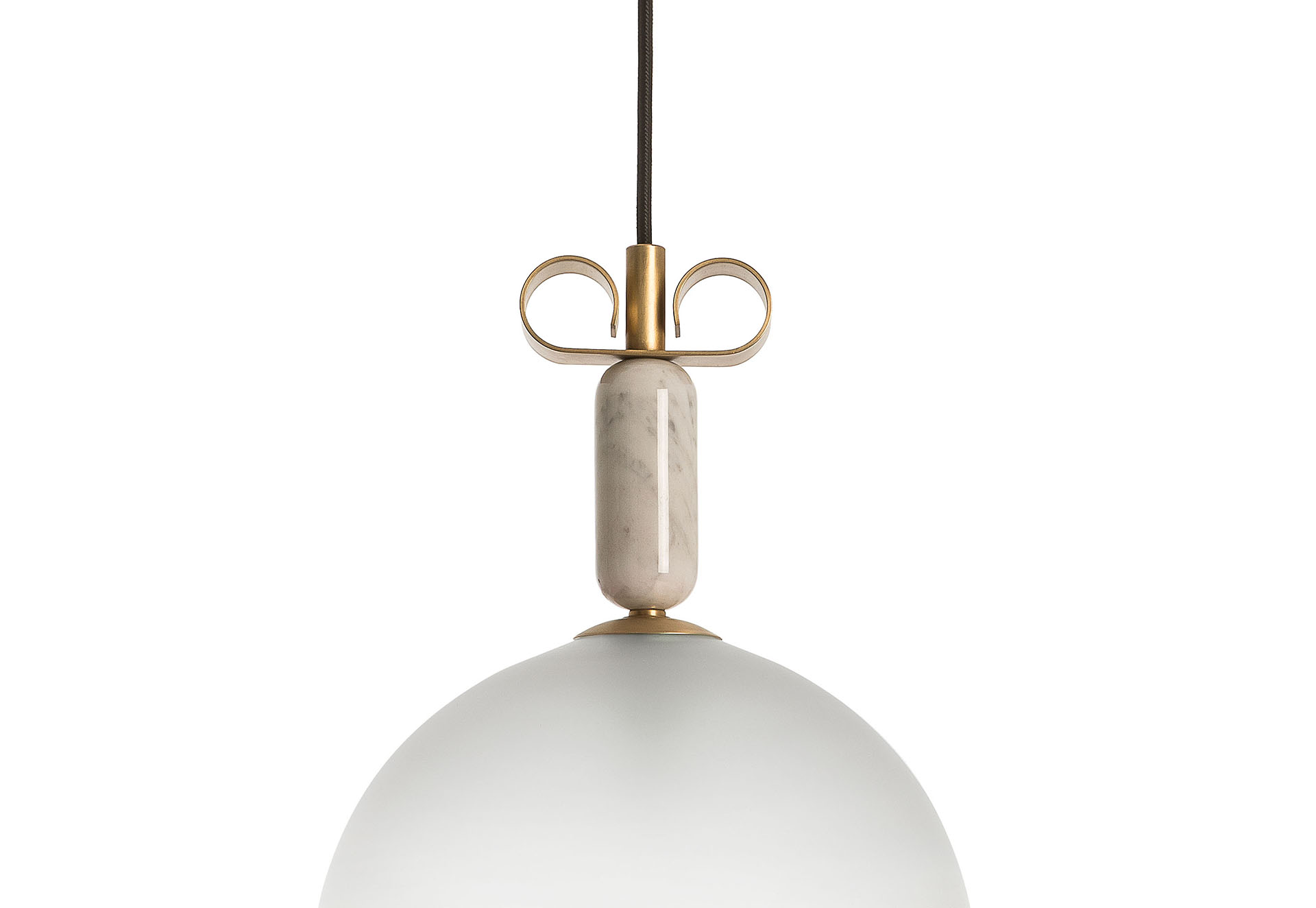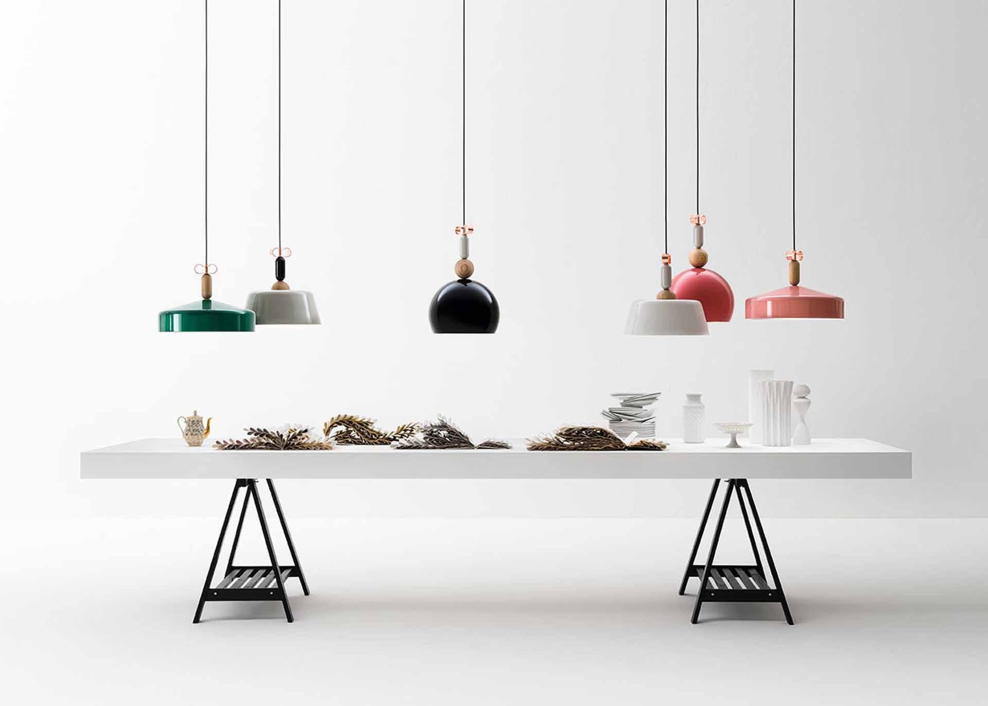 All’interno di questo scenario progettuale forme semplici e materiali diversi vengono sovrapposti a disegnare lampade intese come pezzi di gioielleria. Il sinuoso dettaglio in lego di rovere, i differenti volumi del diffusore, sapientemente declinato in numerose tinte pastello, ed il ricciolo di chiusura in ottone naturale, hanno reso Bon Ton un oggetto iconico.