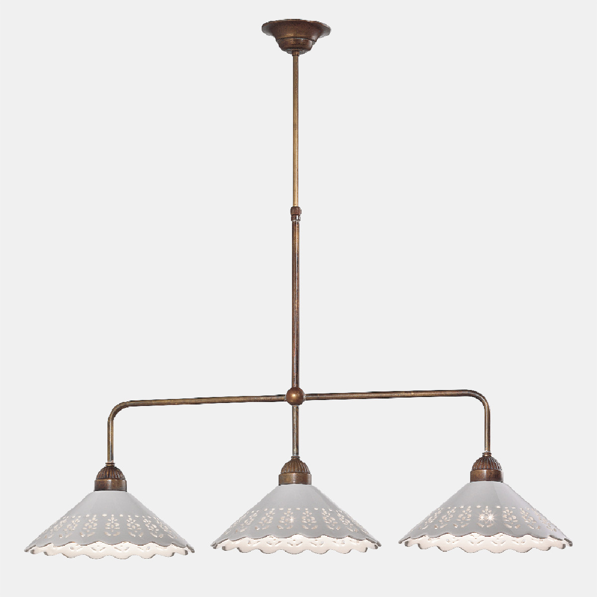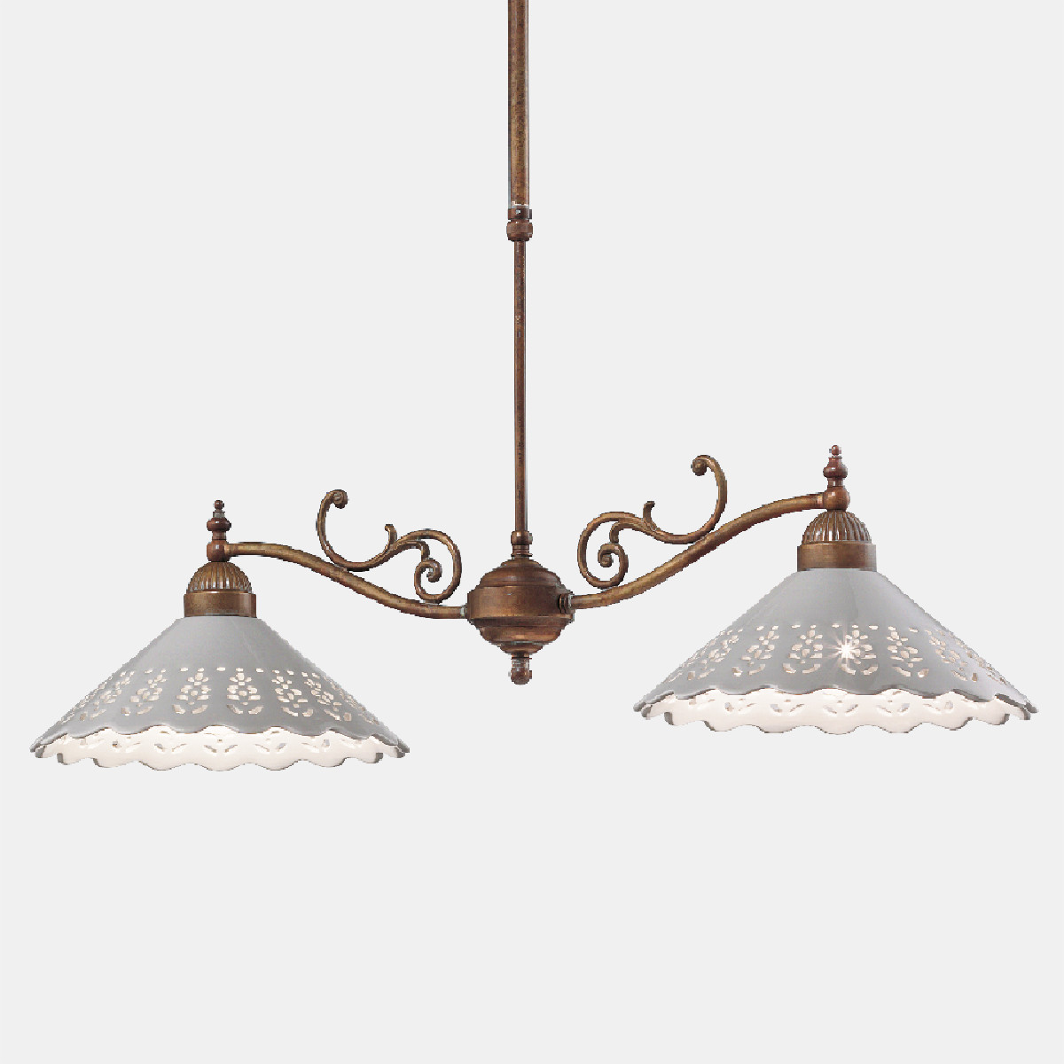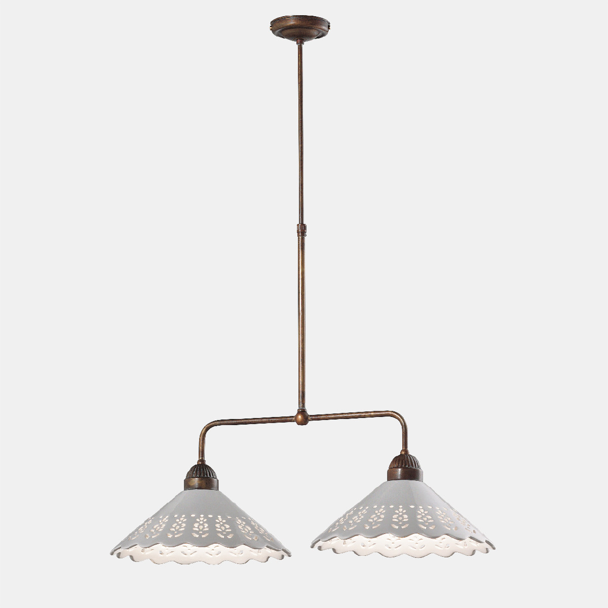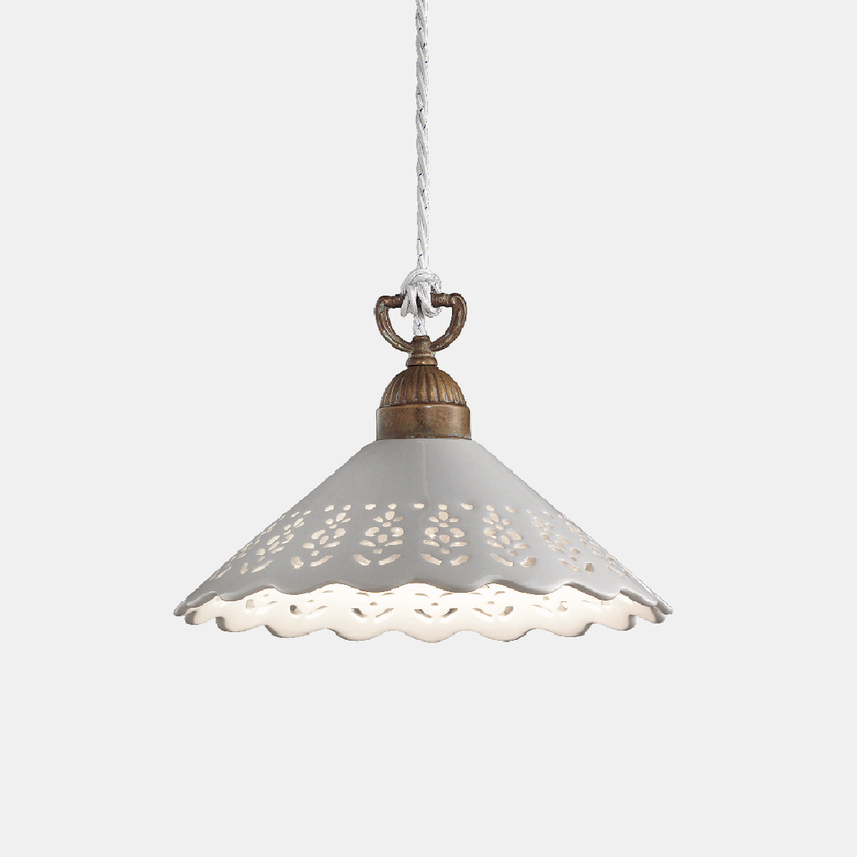 I ricami sapientemente traforati sulle preziose ceramiche di Bassano conferiscono un grande valore estetico alle lampade della collezione Fiori di Pizzo, emblemi di un classicismo rivisitato in chiave moderna. La ricercata lavorazione consente, in fase di illuminazione, la creazione di giochi di luce sulle pareti proiettando fiori e decori.