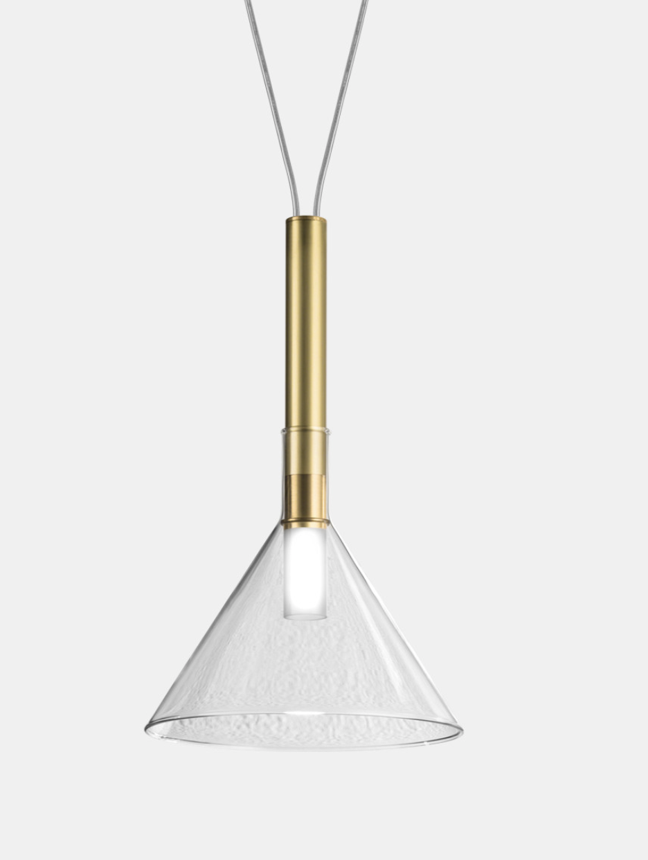 Un gioco di proporzioni ed accostamenti, di dimensioni, di materiali e di forme che danno vita a lampade in ottone naturale (ONT) o anticato (OOT) e vetro trasparente, delicate e raffinate. Una famiglia di lampade da comporre per rendere unico un ambiente, generando uno spazio nello spazio: il risultato finale è appunto una questione di alchimia.
