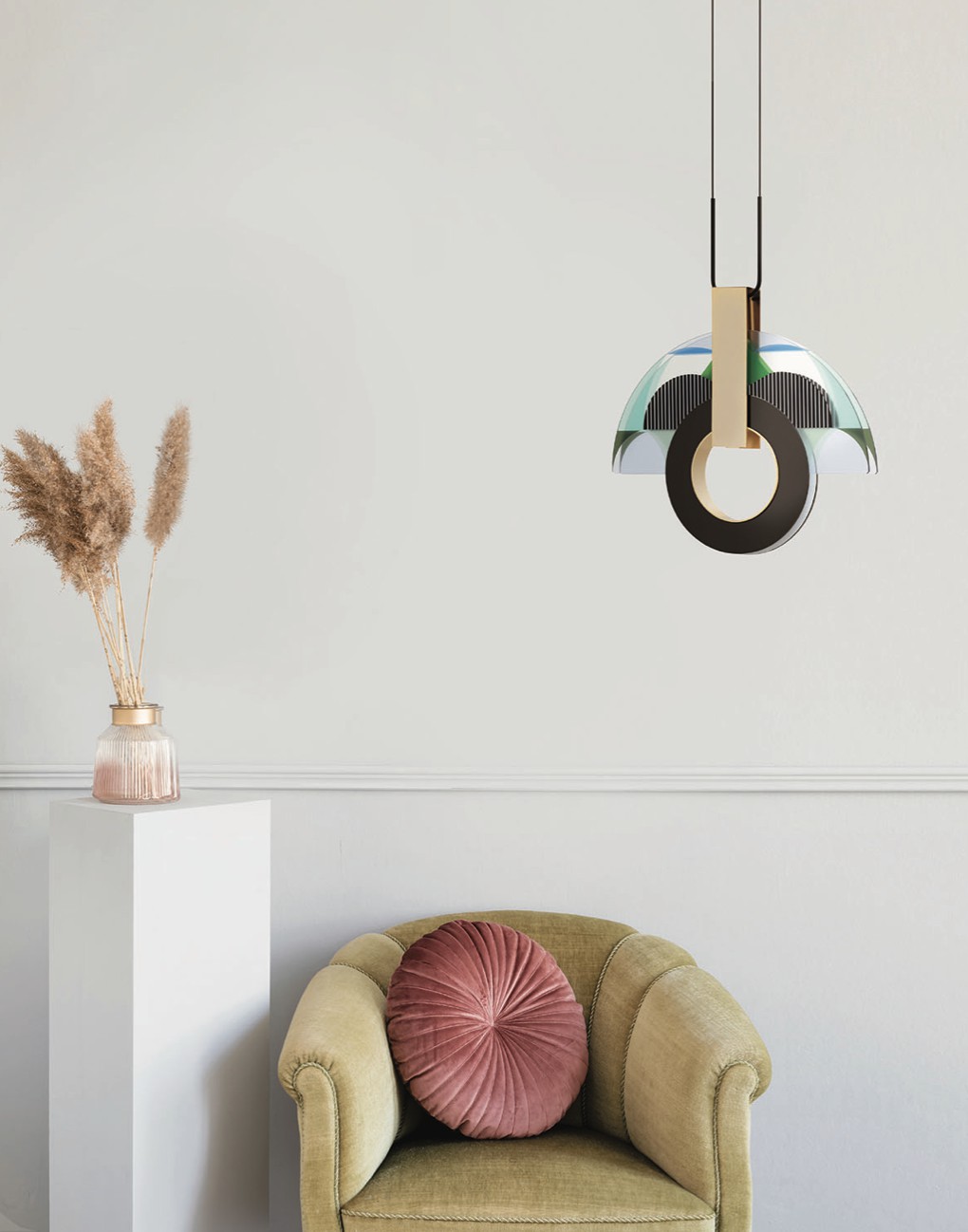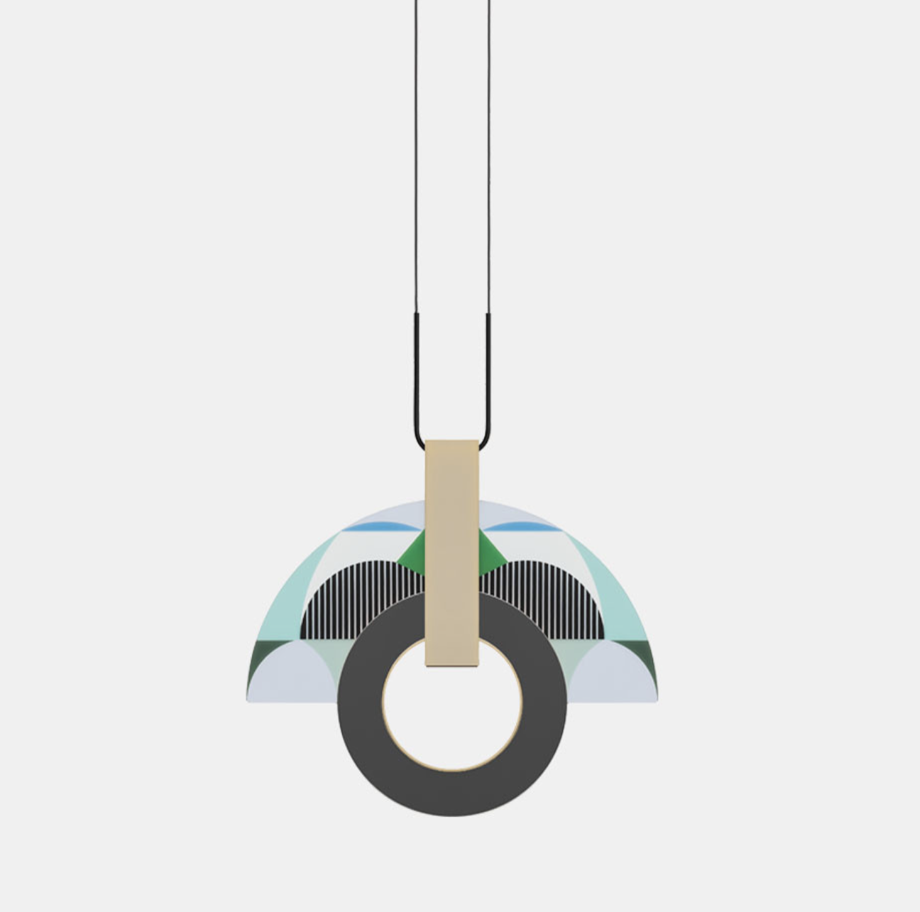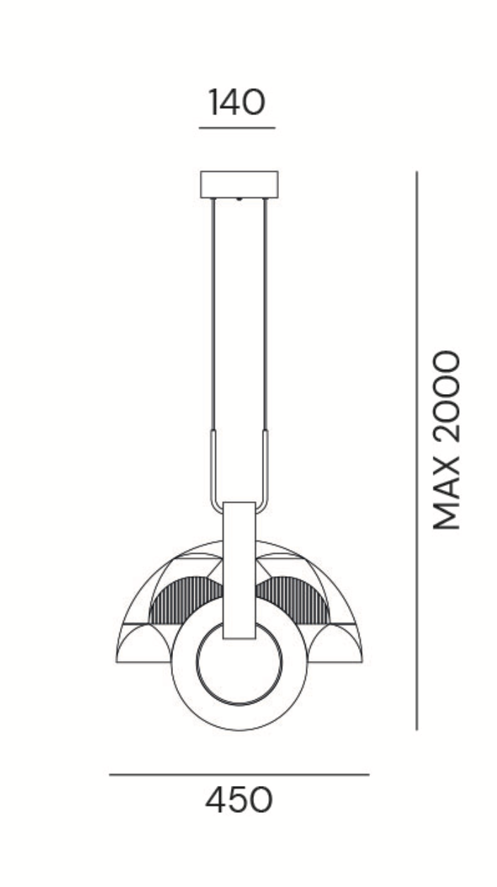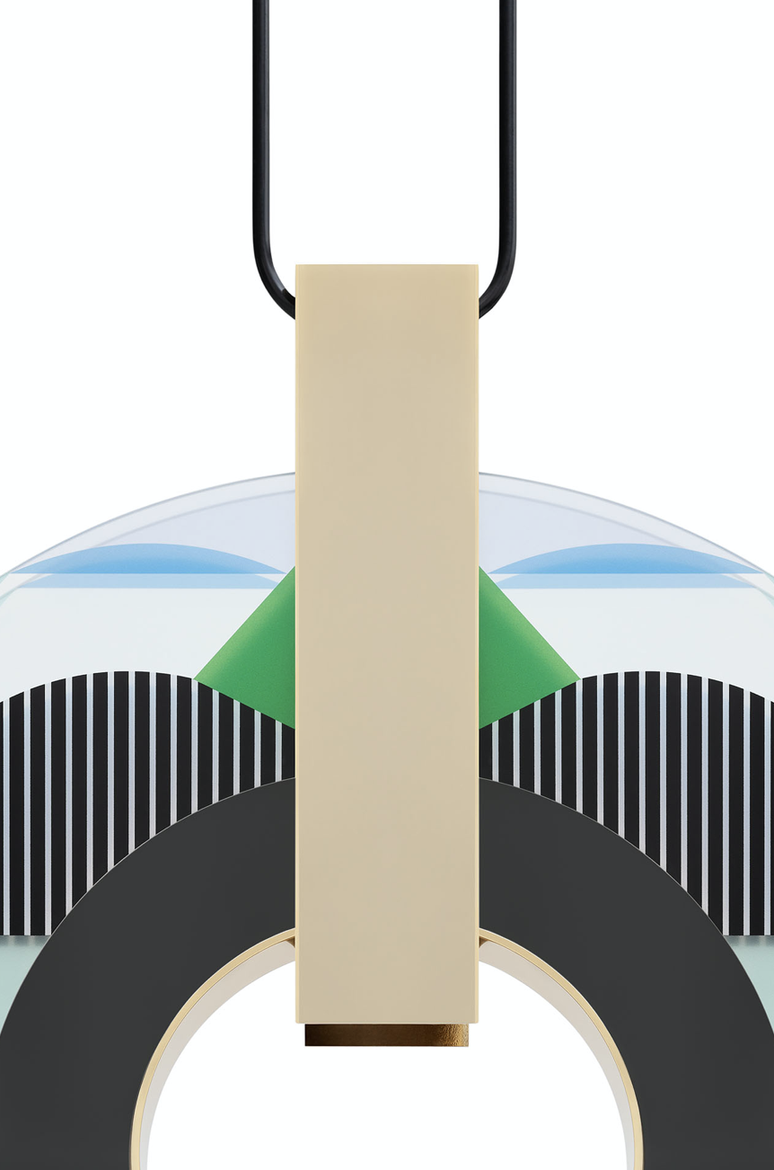 è una lampada a sospensione, sintetica nella sua essenza ma complessa nella sua struttura. La composizione genera inconsapevolmente quell’alito di opulenza caratteristico dell’art déco americana, richiamata anche dal nome della città che incarna quel movimento stilistico. MIAMI è il perfetto connubio tra elementi metallici e vetro decorato, che intrecciandosi fungono da anima e corpo delle lampade stesse, generando un perfetto equilibrio tra estetica e funzione.