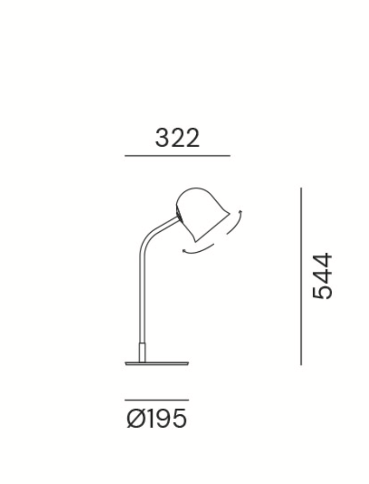 La forma della campana, depurata fino ad arrivare a volumi geometrici semplici, è utilizzata come corpo diffusore, realizzato tramite un’unica sapiente tornitura in metallo. Il volume così generato si posa su una sfera luminosa in vetro opalino, e grazie alla sua forma può essere orientato in qualsiasi direzione con un gesto semplice ed intuitivo.