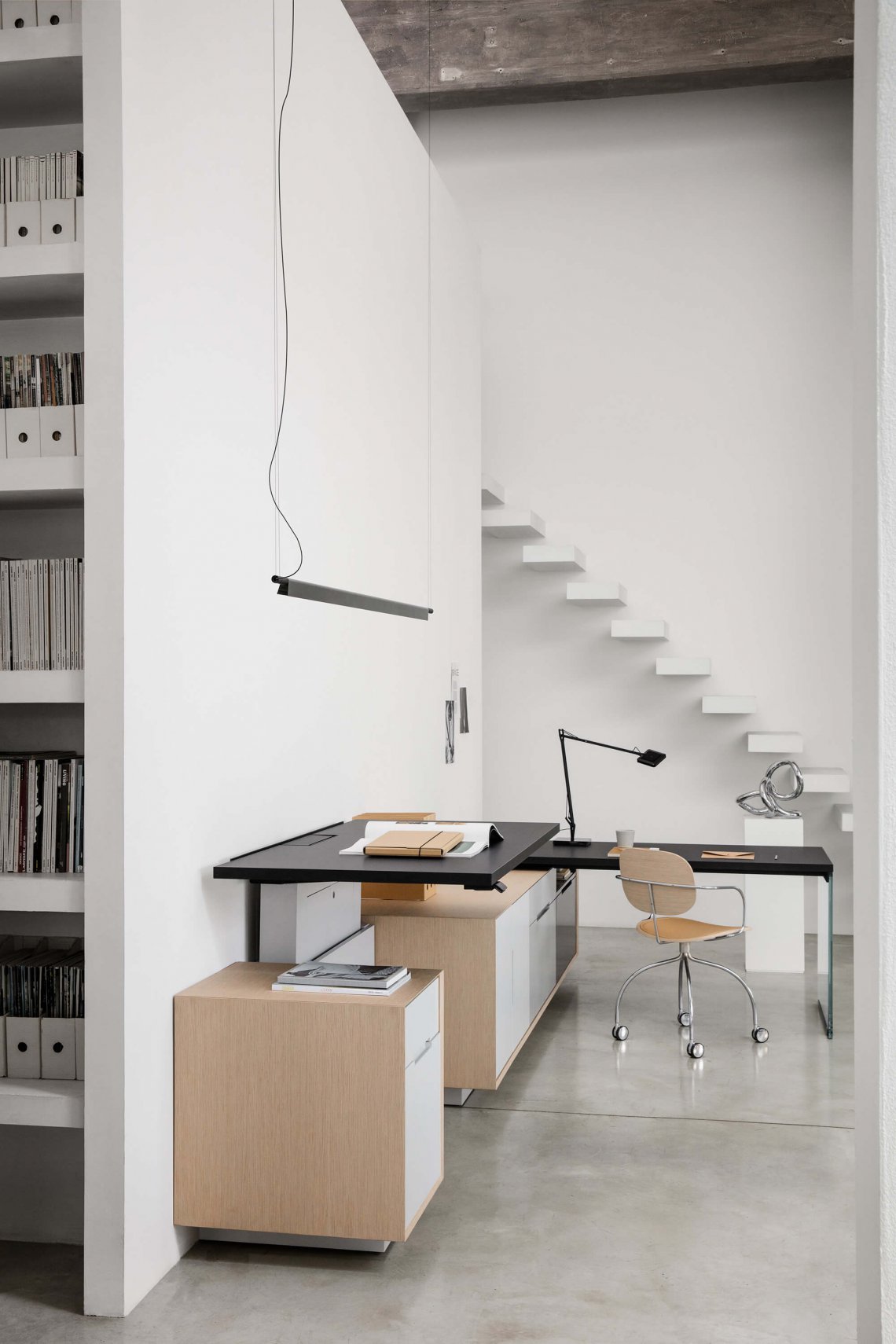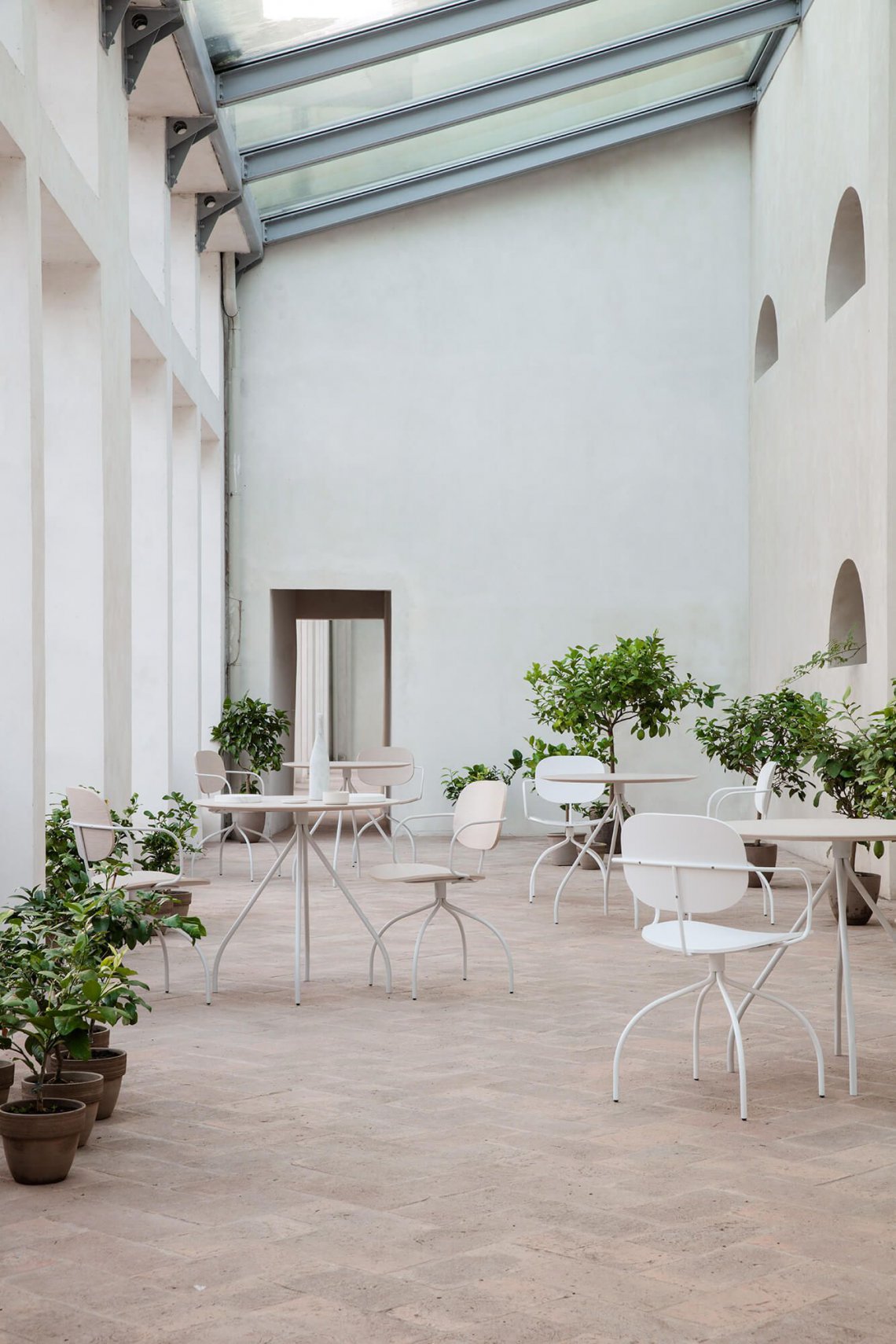 Magenta is a meeting chair, dedicated to the most free and informal workplaces, on glides or pivoting castors. Around service tables or independent in the spaces of the comfort zones, this chair can give a sense of elegance to professional environments. The structure is made of a thin metal rod which draws a three-dimensional form in the space. Above, equally sharp lines define the armrests and wrap around the backrest.