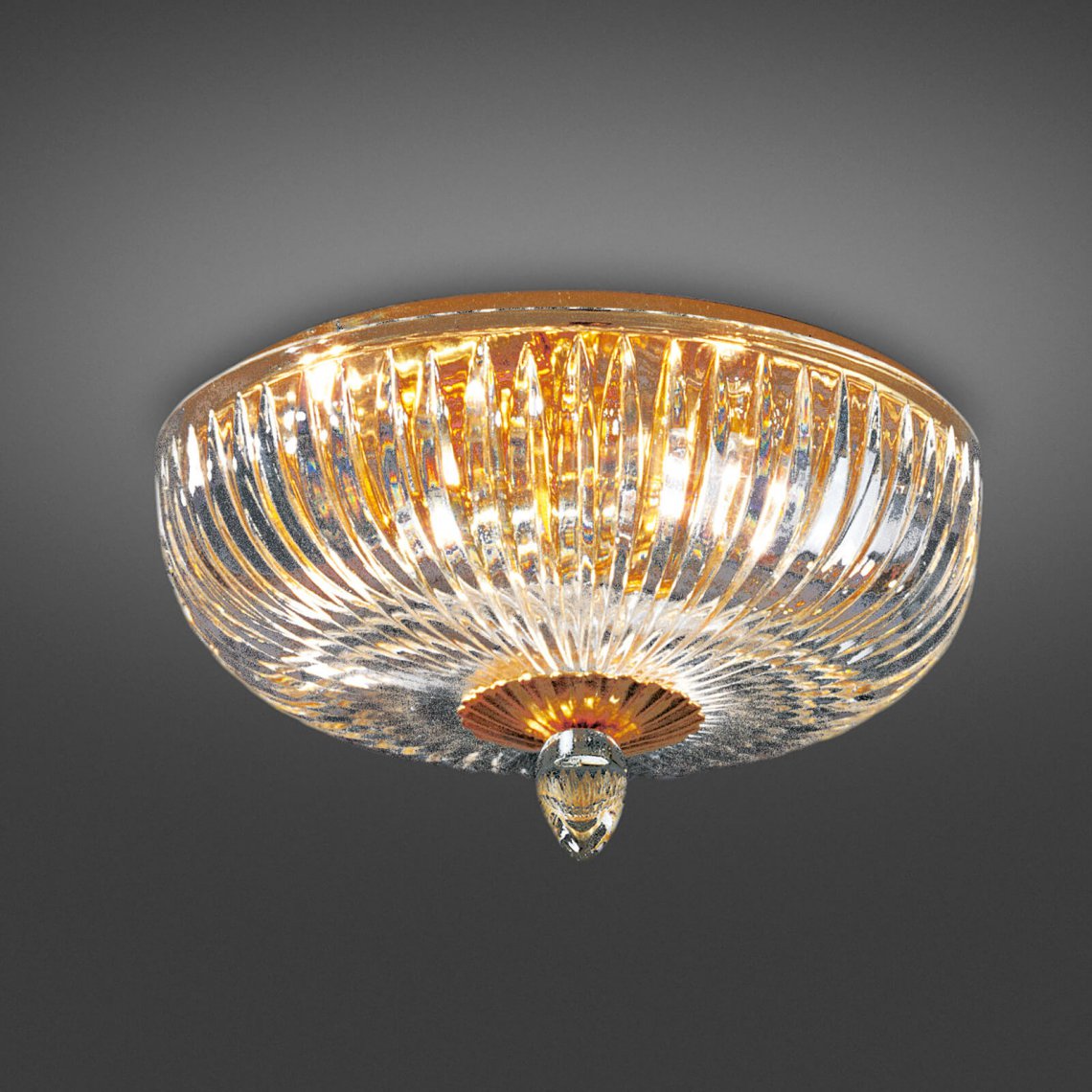 Ceiling lamp with chrome metal and carved crystal diffuser. Opera Classic Collection.
