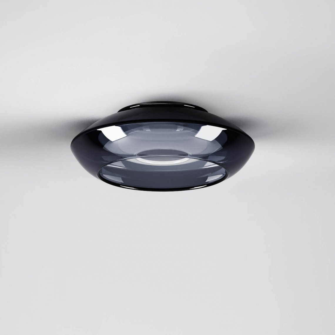 Spotlight with external transparent black blown glass and white internal diffuser.