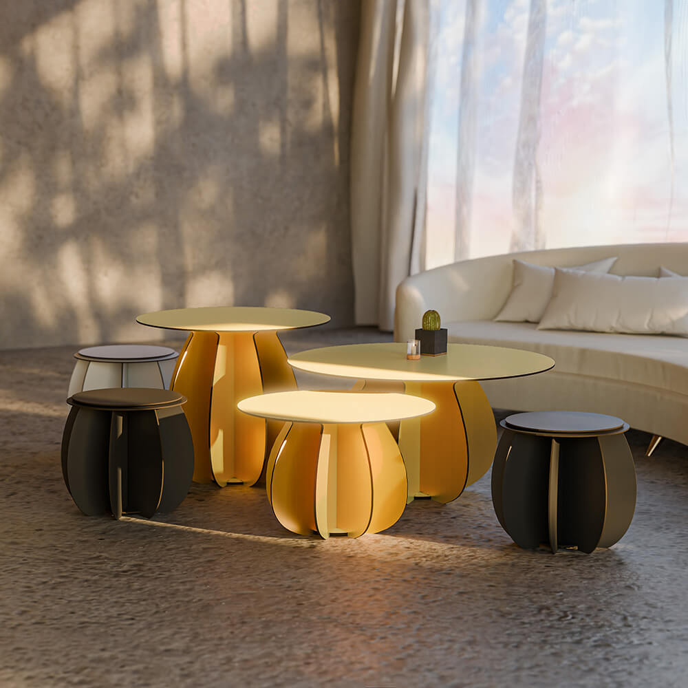 Ibride has teamed up with designer Florence Bourel to create Parodia Magnifica, a trio of round coffee tables. For the start of 2024, they arrive in a Gold version designed for indoor use. Their design is inspired by the world of cacti, and more specifically the round Parodia Magnifica cactus. Influenced by the beauty of gardens and outdoor spaces, the designer has put plants back at the heart of her creations, and has added them to Ibride's furniture collections.