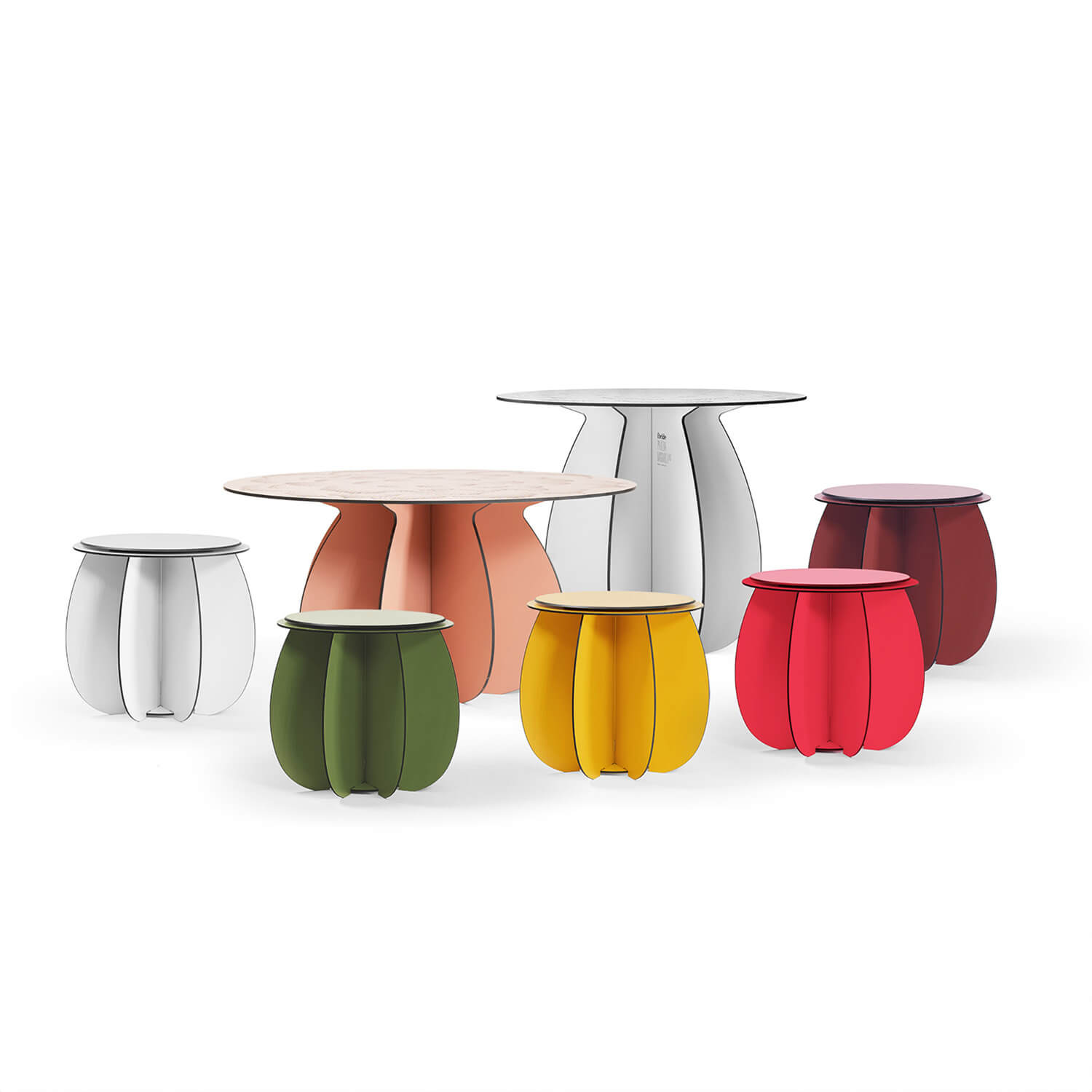 Available in 3 coffee table sizes, Parodia Magnifica is a colorful set of nesting tables. Available in four different matte shades (pink, deep green, midnight blue and white), they offer the possibility of combining colors to create a bright, personalized garden lounge.
