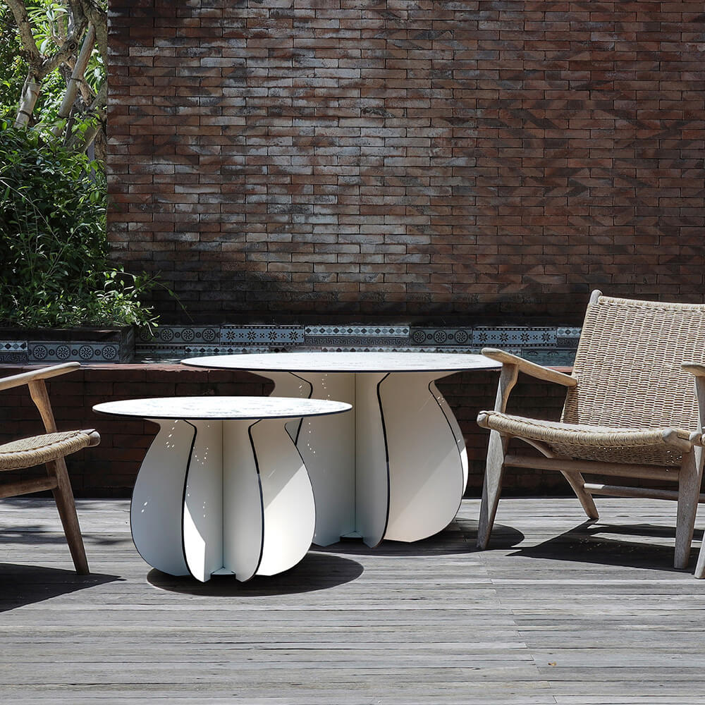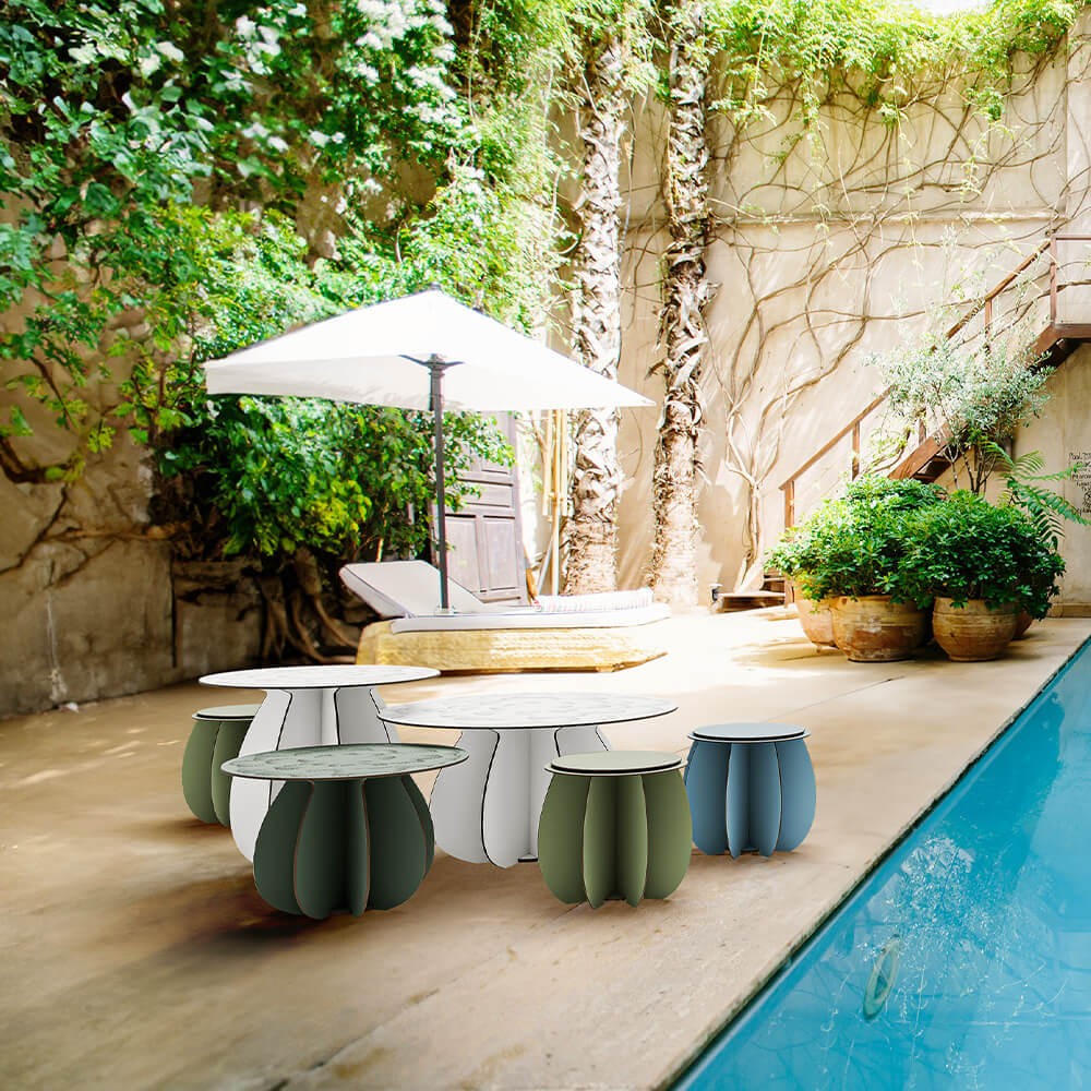 Ibride has teamed up with designer Florence Bourel to create Parodia Magnifica, a trio of round outdoor coffee tables. Their design is inspired by the world of cacti, and more specifically by the round Parodia Magnifica cactus. Influenced by the beauty of gardens and outdoor spaces, the designer puts plants back at the heart of her creations and completes the Ibride furniture collections.