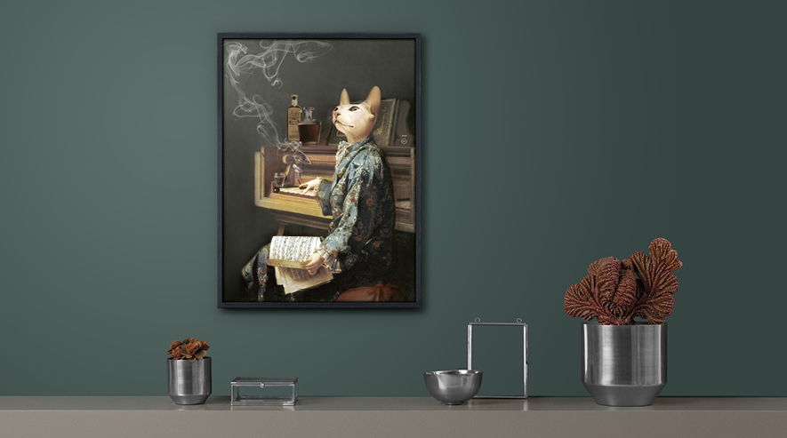 Far from the codes of portraiture, Lazy Victoire embodies casualness. Seated three-quarter of the way up, she holds a cigarillo between the index and middle fingers of her right hand while touching the keys of her harpsichord. Dressed in an elaborate dressing gown, Lazy Victoire opens the doors to her controlled intimacy.Limited edition, numbered and signed