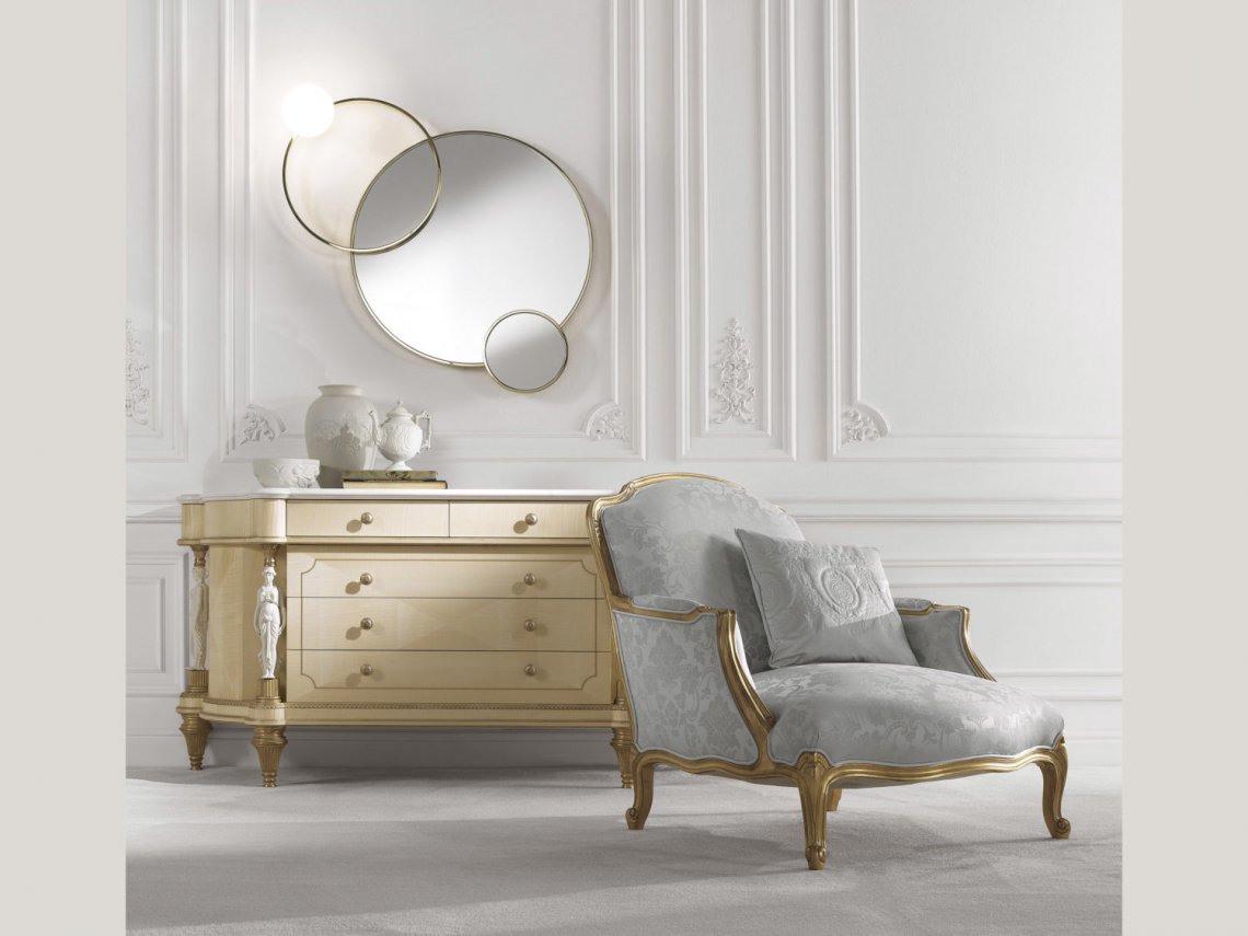 MIRROR WITH STRUCTURE IN BRASS. BEVELLED MIRRORS. SPHERE WITH INTERNAL LIGHT.