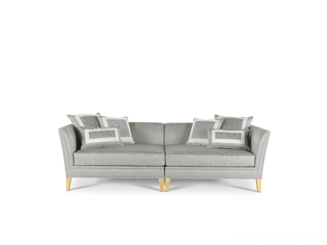 SOFA WITH STRUCTURE IN BEECHWOOD. PADDING IN FOAM. UPHOLSTERY IN FABRIC. FEET WITH PATINATED ANTIQUE GOLD FINISHING.