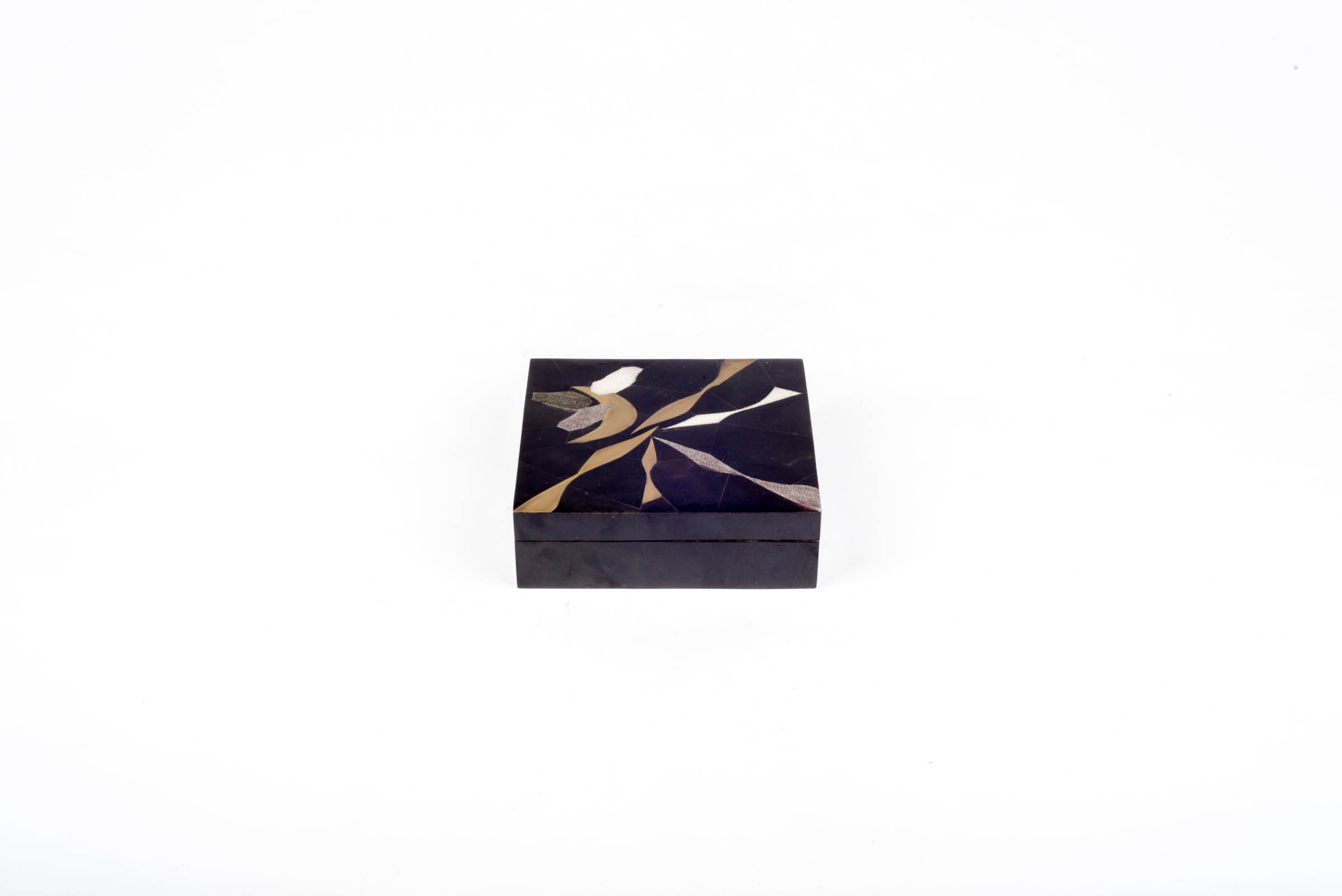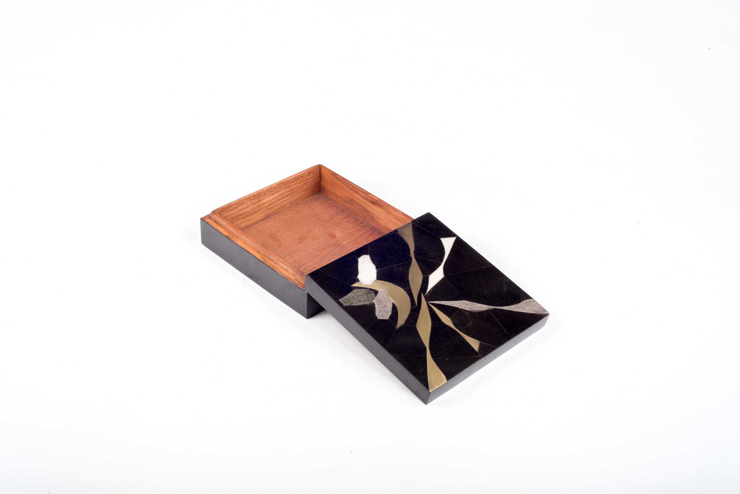 The Stardust Dark Box in Medium showcases the signature whimsical details of KIFU PARIS. This piece includes intricate inlay work of shagreen, pen shell & bronze patina brass to create this stunning pattern. Available in other sizes and different finishes.