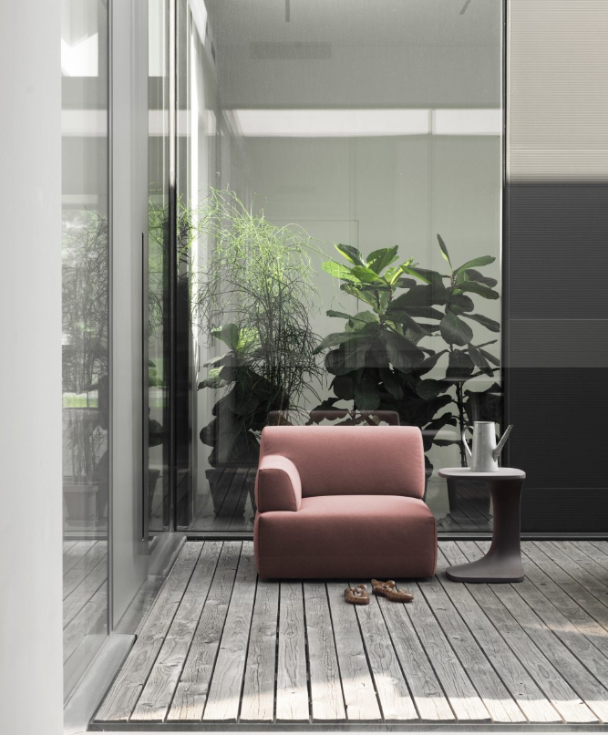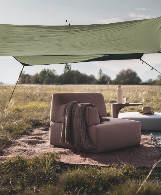 The Palchetto upholstered outdoor seating system is inspired by the architectural elements found in Italian—style theatres, the boxes or “palchetti” where spectators take their seats to watch performances. Consisting of one or more upholstered elements, which can be used alone or combined to create different configurations, Palchetto features a quick coupling and release system between the various modules, which can then be arranged as desired. The seating is soft and comfortable with a memory foam seat and backrest with elastic straps, which echoes the same shapes as Palco, an upholstered outdoor seating system where the seats rest on a platform, and with which Palchetto can be combined.