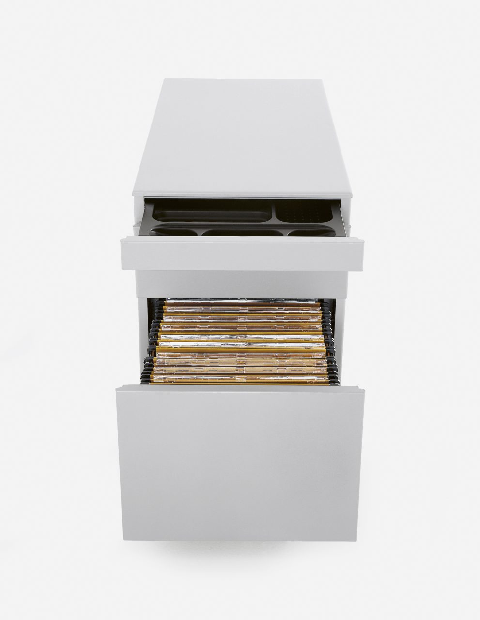 The word “Bureau” perfectly describes this piece of furniture created by Bluezone, bearing in mind workspaces. It is perfect in the office next to a desk and ideal in the home as an accessory for the home-office. A metal drawer unit with flawless lines, Bureau is a minimalist parallelepiped, which moves easily on castors. Made of strong unalterable metal, it is hardwearing and equipped with a stationery drawer and can be fitted with drawers only, or with drawers and a file sorter. Bureau is available with a semi-matt white, aluminium or satin black finish.