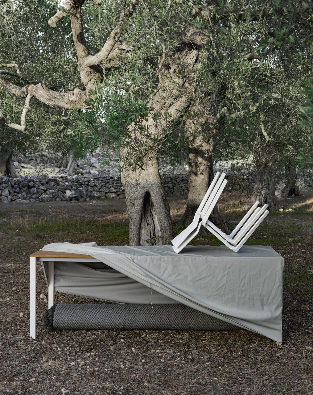 In areas close to the sea, in humid climates or during a long period when not used, it is important to protect outdoor furniture well, even when it is made of high-quality materials and finishes. For this reason, Casper coverings have been created: made of polyester fabric, they have a coated external covering that protects against water and humidity, with exceptional durability and breathability, whereas the interior minimises humidity and temperature changes, protecting furniture from mould, frost and heat. Once folded, they are not bulky and can be stored inside special internal pockets in some models, or in the extension trays of extendable tables.