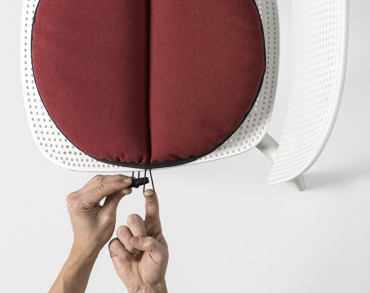 Lips cushions have been designed to make our chairs even more comfortable. Designed by LucidiPevere, they come in three different shapes – round, shaped and rectangular, the latter speci?cally designed for the Mem chair – to adapt to all chairs, from the smallest to the largest. Countless options are available for upholstery, whereas a wide variety of colours allows you to match the colours with chairs as you please. Lips cushions feature a black trim and a central seam, which makes the round version look like a mouth. The lower surface is covered with non-slip material, a technical detail that makes them even more comfortable.
