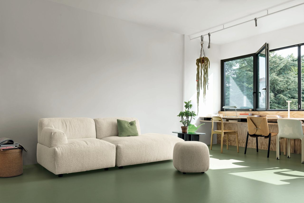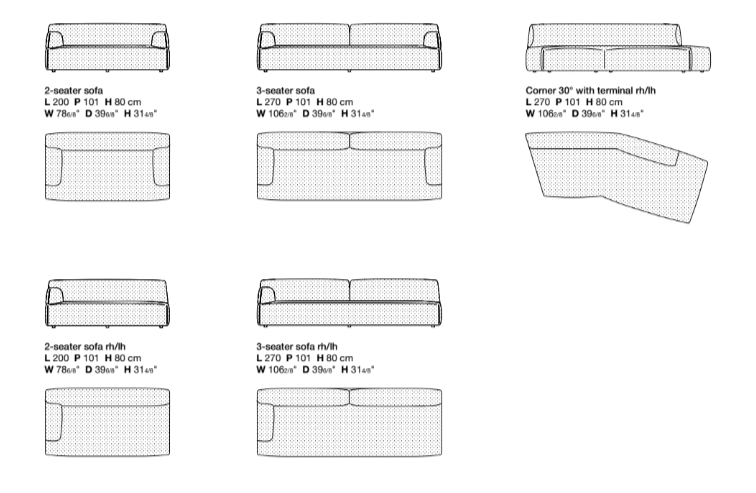 Forma has generous dimensions, a comfortable and balanced seat height, soft padding and extra cushions. Its interlocking design does not require glueing.