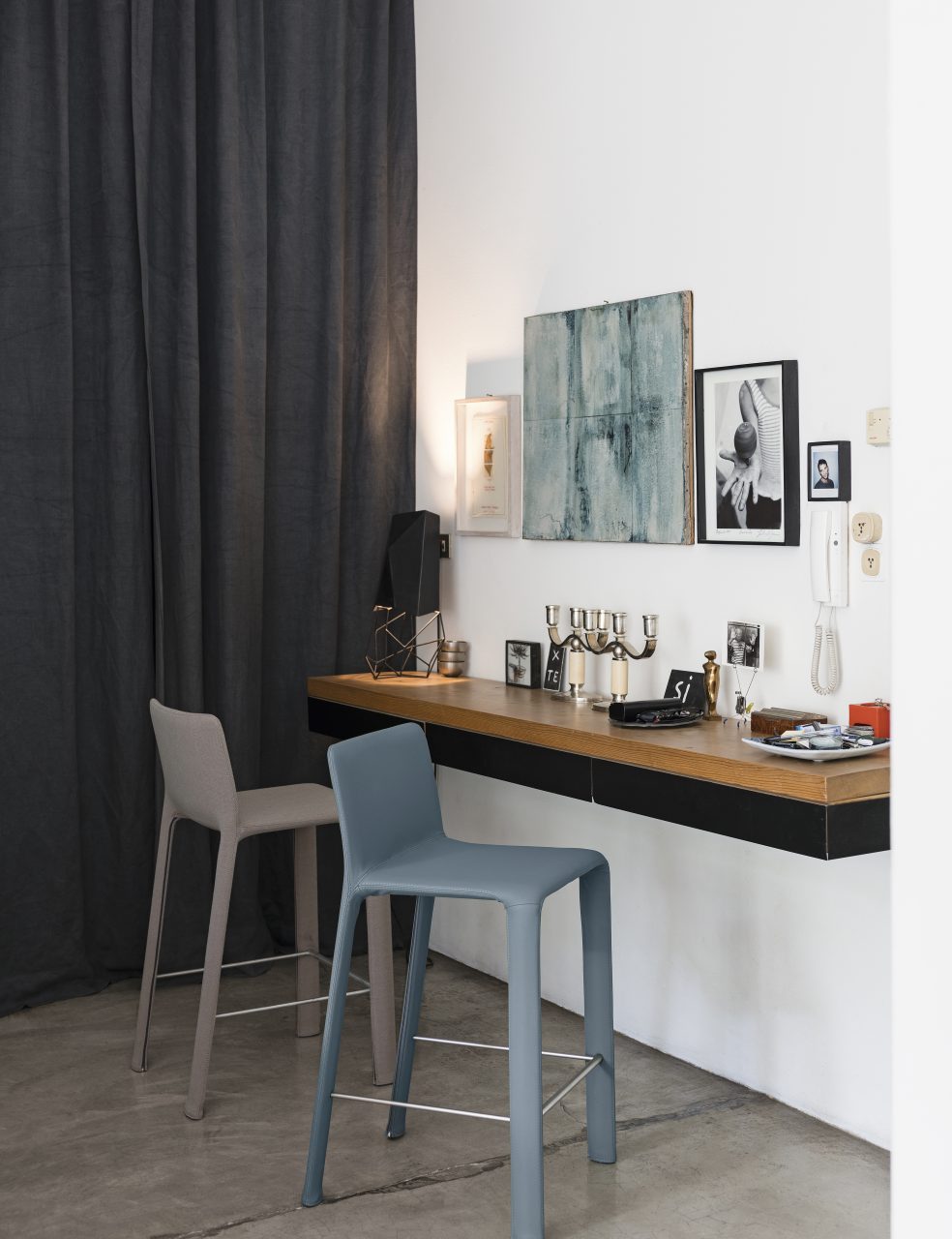 stools in two different heights, a continuously